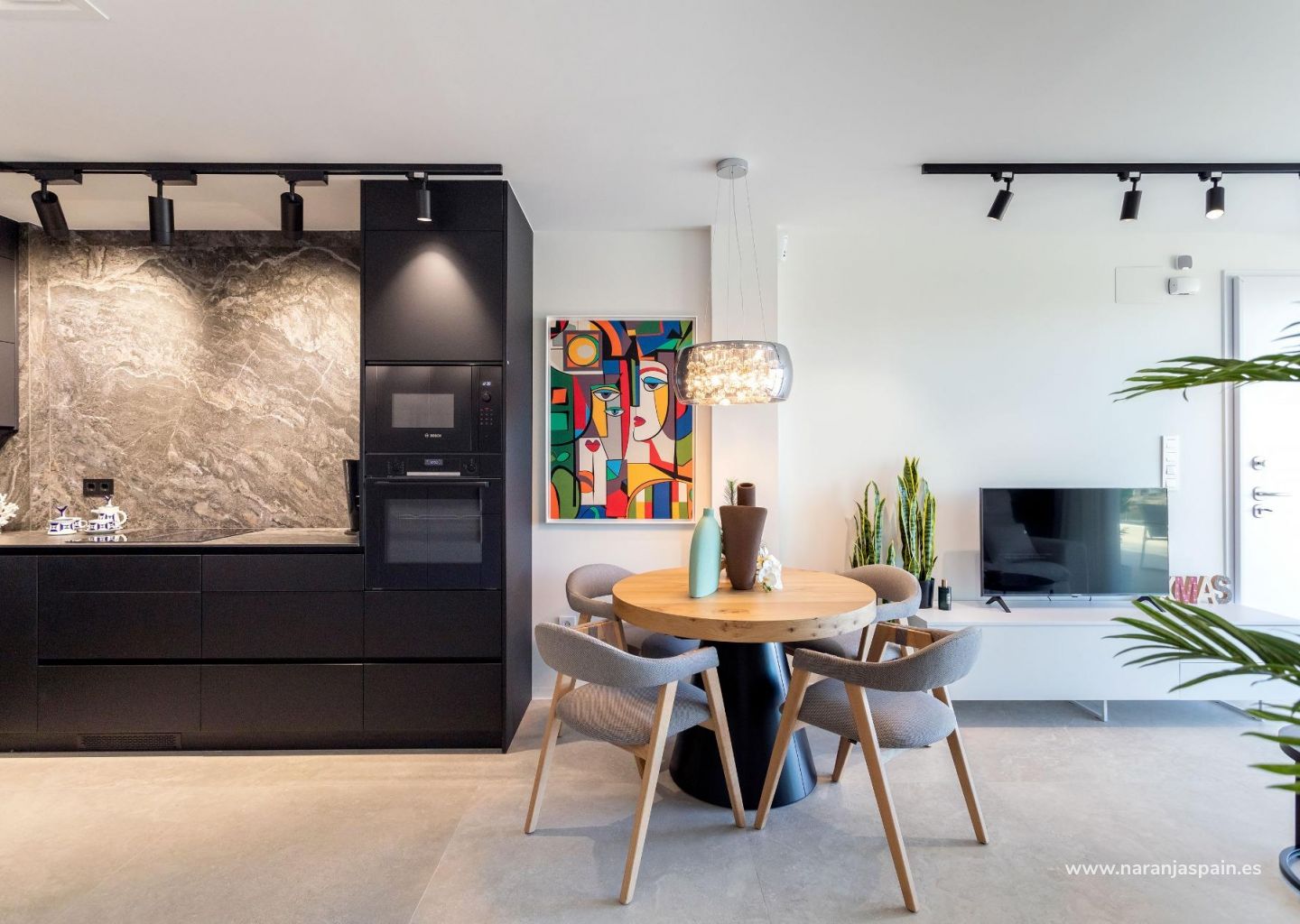 NEW BUILD RESIDENTIAL COMPLEX IN FINESTRAT New Build unique and exclusive residential complex in Balcon de Finestrat. This complex of modern apartments and penthouses all with 2 bedrooms, 2 bathrooms, open plan kitchen with the living and dining area and terraces. Penthouses with private solarium. Each property has underground parking space and storage room. Gated residential complex with communal swimming pool to enjoy one of the best locations on the Costa Blanca. It is a great opportunity and privilege to be able to live with this environment of golf and beach, close to all amenities of all services considered one of the best places to invest. Finestrat located in the Marina Baixa region of the Costa Blanca. Benidorm is just a five-minute drive from the properties and offers all the services you would need including shops, bars, restaurants, supermarkets, banks, pharmacies and several private international schools. Close to the beaches of Levante, Poniente and Cala de Finestrat, with more than 6km in length that are among the best in Europe awarded by the European Union with Blue Flags. All leisure services such as the theme parks of Aqua Natura, Terra Mítica, Terra Natura, Aqualandia and Mundomar, Sierra Cortina and Villaitana Golf courses, hiking and climbing in Puig Campana an incomparable natural setting or enjoy of nautical sports. Distance to the sea 4 km, to the airport 26 km and to the golf 1km. Complex located 40 minutes from Alicante airport.
