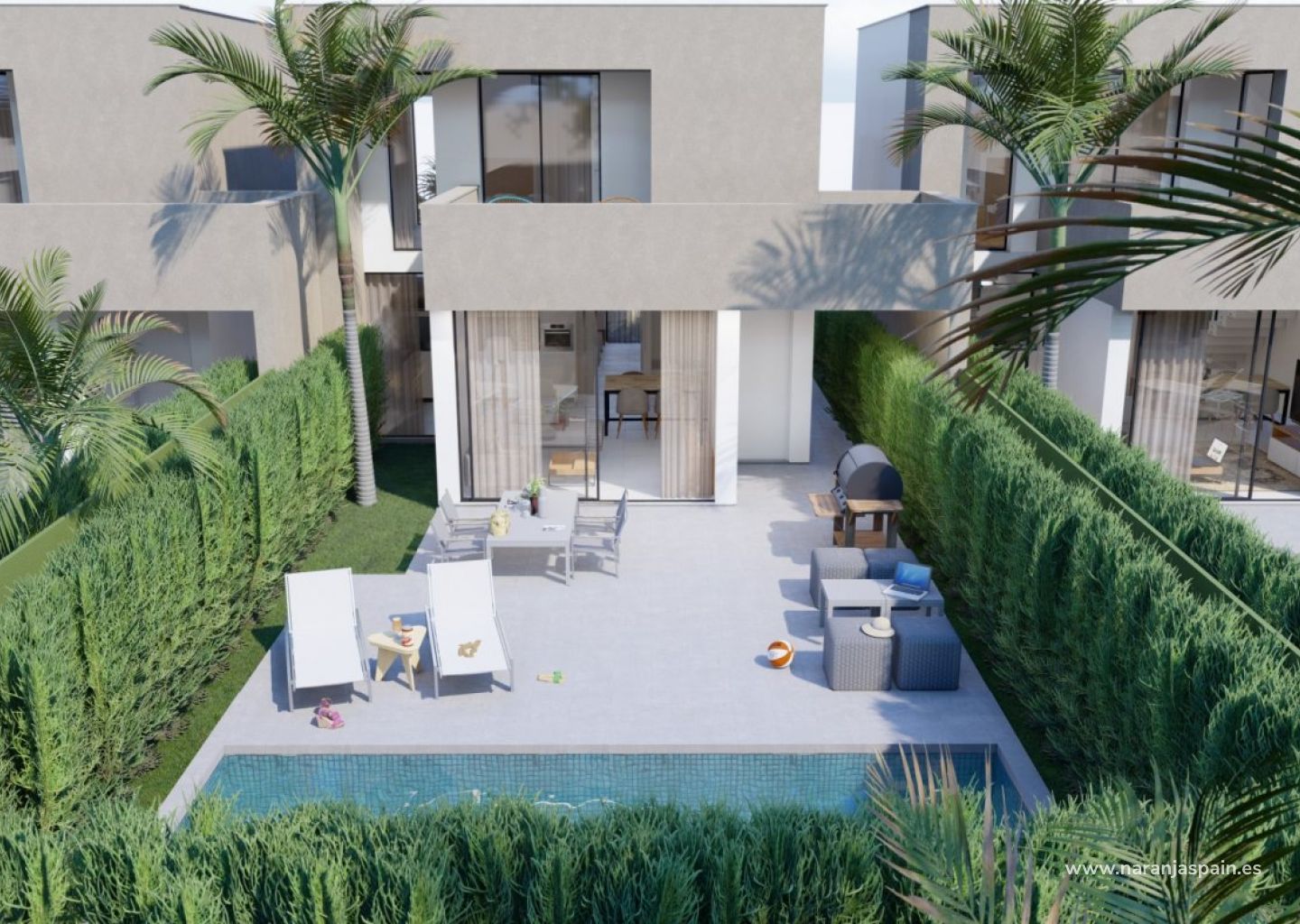 New Build modern villa at 200m from the beach. The luminous villa build over 2 floors, has 3 bedrooms and 3 bathrooms.