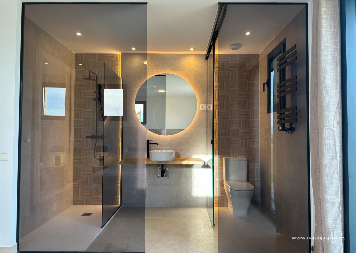 High quality finishing’s include; an attractively tiled bathroom and shower room. An open plan kitchen with ‘Silestone’ worktops, with the fridge/freezer and washing machine integrated within the cupboards. A Ceramic hob, cooker hood & microwave. Air conditioning, double glazing, mirrored wardrobes to bedrooms with high quality ‘Roca’ or ‘Porcelanosa’ sanitary ware and fittings throughout.