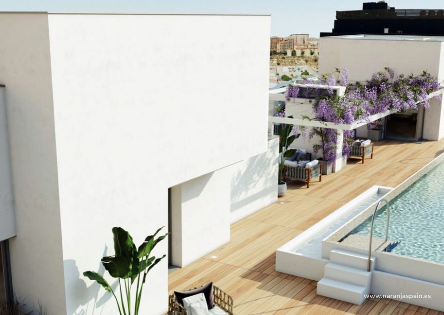 Residential includes a community garage, storage rooms, gym and exclusive outdoor infinity pool located on the roof of the building. From the heights you will enjoy a pleasant bath while contemplating incredible views over the sea and the Alicante skyline.