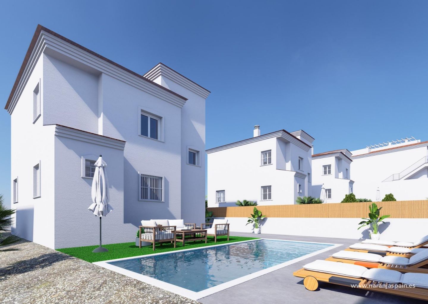 Villas: Three distinct models are available, offering 3 to 4 bedrooms, private plots with the option to add a swimming pool, and ample parking. These homes include ducted air conditioning on the ground floor and spacious solariums for private relaxation.