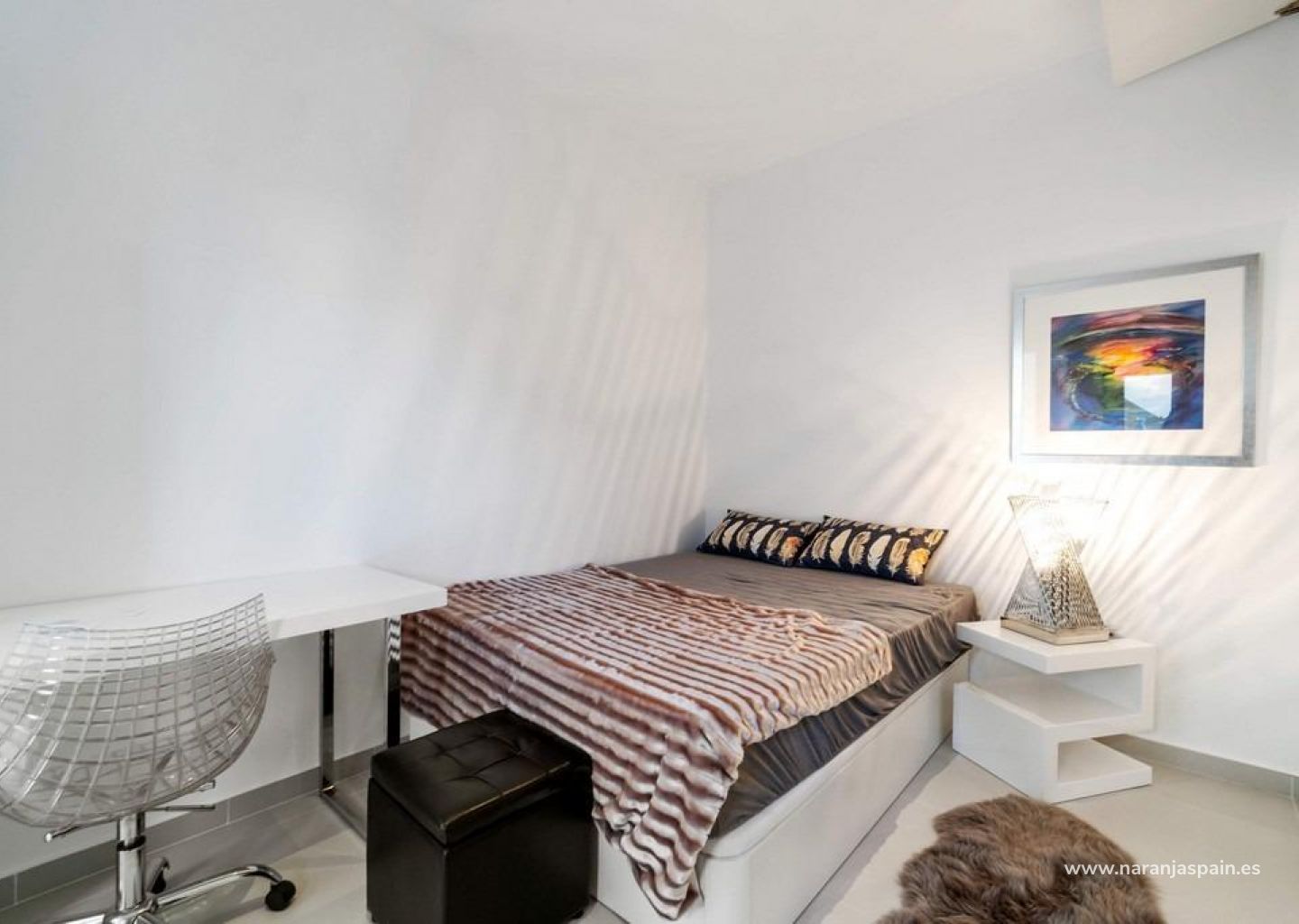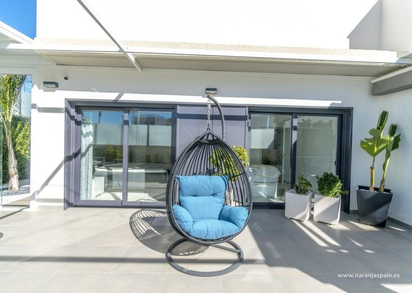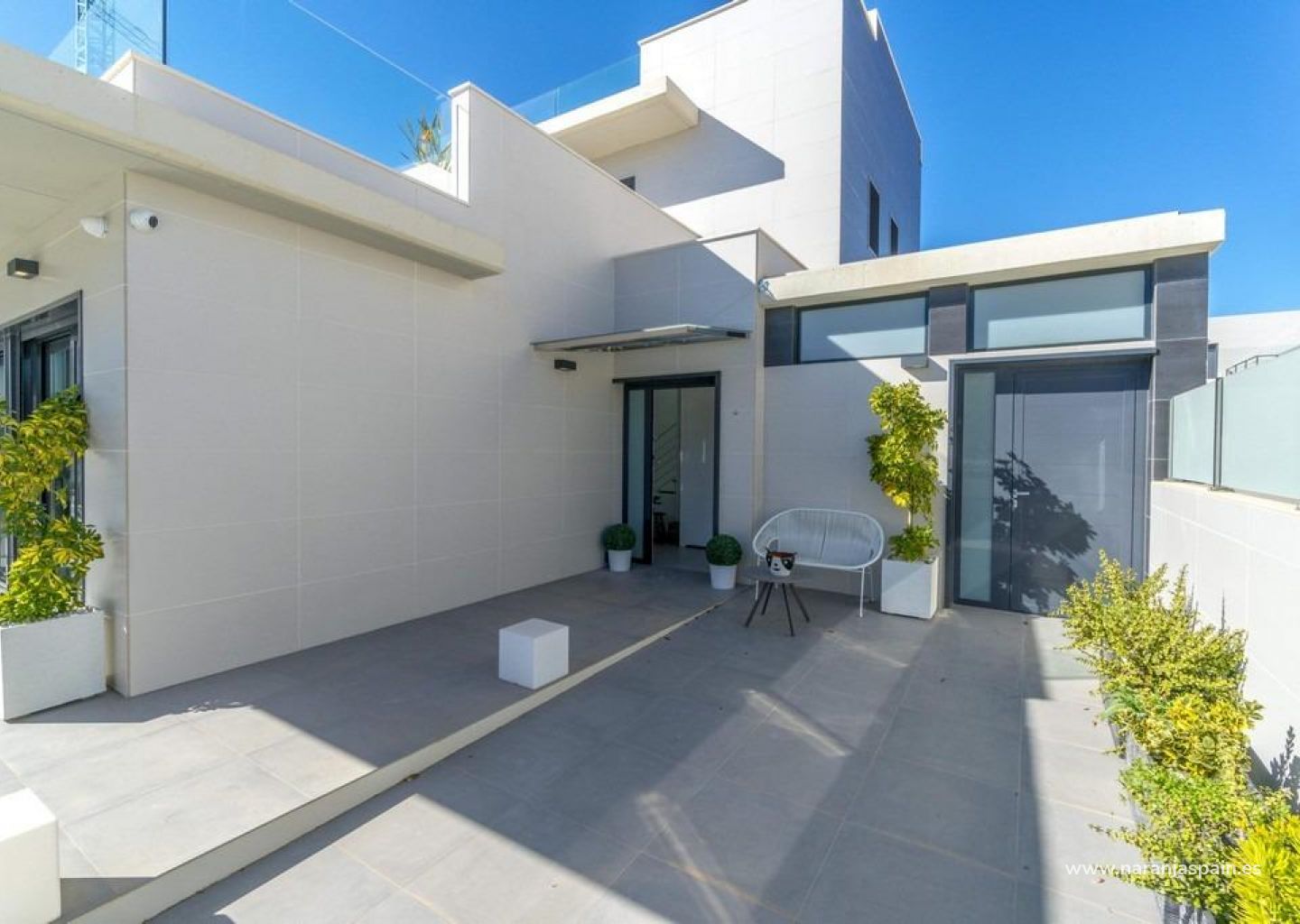 Magnificent luxury villa located in Dehesa de Campoamor just 300 m from the beach. Built on a 500 m2 plot, it has a constructed area of 200 m2. Distributed on two floors: on the ground floor we find the large living-dining room, open-plan kitchen, 2 bedrooms, 2 bathrooms, porch. On the first floor there is one more room, bathroom, half-covered solarium with jacuzzi and relaxation area. Views of the sea and surroundings from the solarium. Equipped with underfloor heating, central air conditioning installed, parking on the plot. Private heated saltwater pool. Southeast orientation. Sold furnished and equipped. It has a perfect location: 50 m from a supermarket, pharmacy, 200 m from a wide variety of bars and restaurants, promenade and the beaches of Campoamor 300 m away.