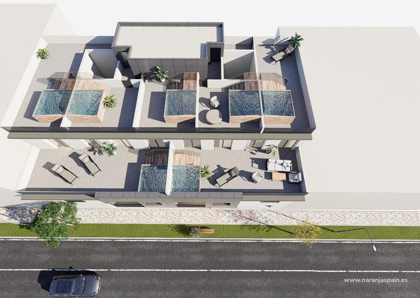 New Build Apartments in Pilar de la Horadada with private Jacuzzi Prime Location in the Heart of Pilar de la Horadada Located in the vibrant center of Pilar de la Horadada, Alicante, this exclusive new development offers an unbeatable combination of modern living and Mediterranean charm. Pilar de la Horadada is a picturesque Spanish town in the southernmost part of Costa Blanca, known for its welcoming community, charming plazas, and proximity to stunning beaches. Apartment Options and Features The residential complex consists of seven meticulously designed apartments, offering a range of layouts to suit diverse needs: Ground Floor: A spacious 3-bedroom apartment including a private rooftop solarium. First Floor: Four apartments featuring 1 or 2 bedrooms, each with individual solariums. Penthouses: Two exclusive 3-bedroom apartments with expansive private terraces. All apartments boast high-end finishes, including: Fully equipped kitchens with modern appliances. Pre-installed ducted air conditioning for your convenience. Aluminum exterior carpentry with thermal break for enhanced insulation. Double glazing (4+14+4 Climalit or similar) for energy efficiency. Stylish bathrooms with suspended WC (Roca Gap or similar), rain-effect showers, and included mirrors and enclosures. Private jacuzzis for each house, perfect for relaxation. Additional Amenities for Elevated Living The development offers: A parking space for each apartment located on the ground floor. An elevator providing access from the ground floor to the solarium level. A summer kitchen in each solarium, ideal for outdoor entertaining. Convenient Access to Key Points of Interest This location provides easy access to essential amenities and attractions: Beaches: The sandy shores of Torre de la Horadada and Mil Palmeras are just 3 km away, a 5-minute drive or a scenic bike ride. Golf Courses: The nearest golf course is 8 km away, perfect for golf enthusiasts. Shopping Centers: Zenia Boulevard, one of the largest shopping malls in the area, is 12 km away. Airports: Corvera (Murcia) Airport is 40 minutes (40 km), and Alicante Airport is 55 minutes (55 km) by car. Discover the Mediterranean Lifestyle Pilar de la Horadada combines the tranquility of a coastal town with the convenience of modern living, offering supermarkets, restaurants, bars, and vibrant plazas within walking distance. Schedule Your Visit Today Don’t miss the opportunity to own your dream home in this sought-after area of Costa Blanca. Contact us now to arrange a viewing or for more information!