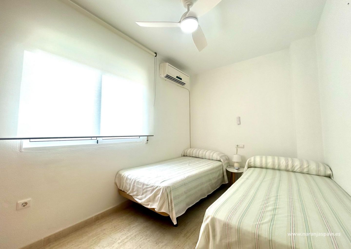Located in the beautiful, green area of Campoamor, this three-story townhouse offers an excellent opportunity to enjoy the Mediterranean lifestyle. This fantastic home has a constructed area of 105 m², including three bright double bedrooms and an additional space ideal for another bedroom or for versatile use. The home is in very good condition. It has a separate, fully equipped kitchen and a laundry room with access to the approximately 16 m² patio. It also has a front terrace, where you can even park your car. There is also a 15 m² solarium for sunbathing throughout the day. The beautiful local beaches are just 500 meters away. For sports and recreational lovers, the Campoamor Sports Center—a five-minute walk away—offers a swimming pool, tennis courts, and a gym. Supermarkets and bars and restaurants are nearby. Don't miss this unique opportunity.