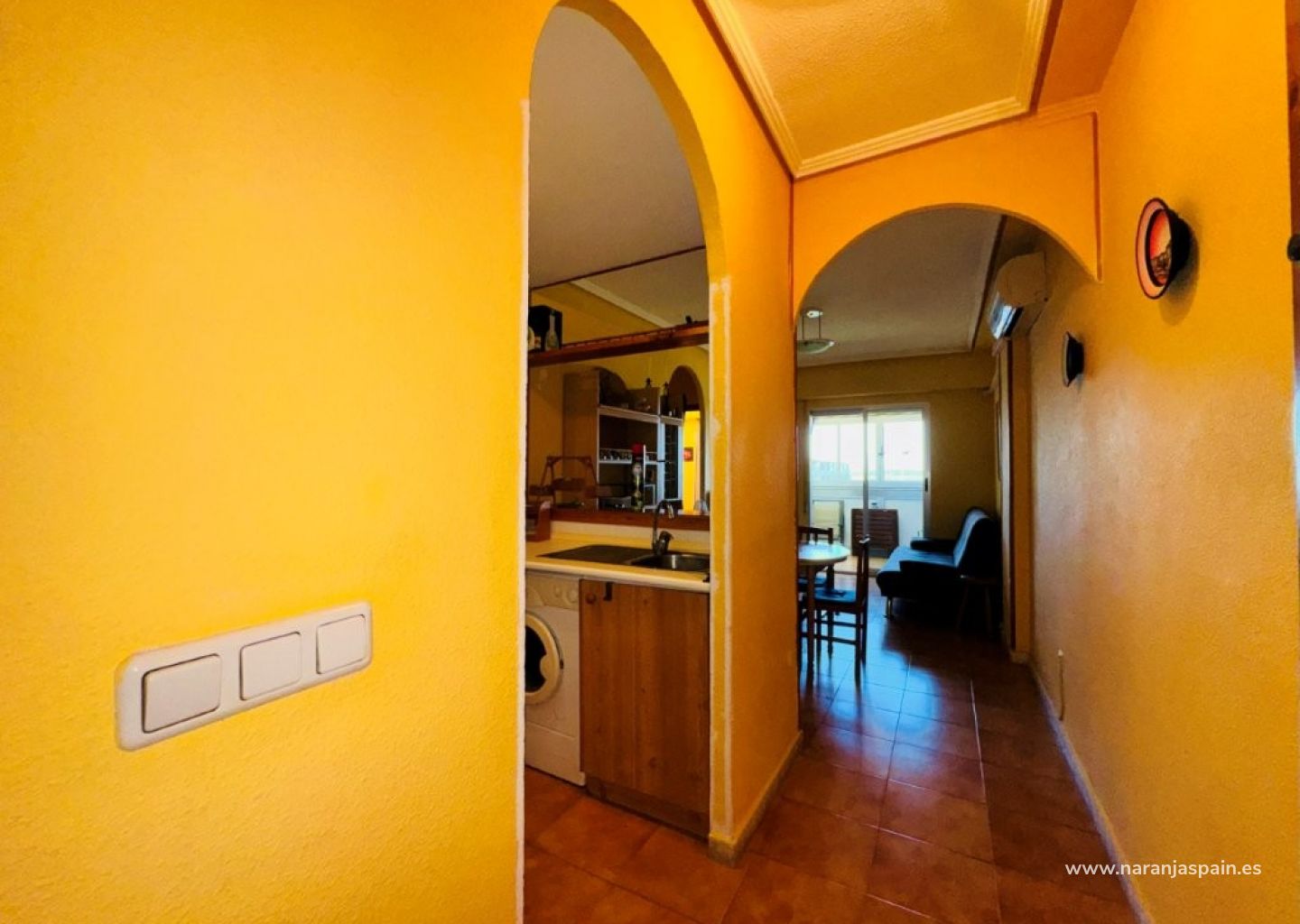 This apartment is located in the Puerto Romano residential complex, just 200 meters from the beach and a 5-minute walk from the town center. It has a constructed area of 40 m² distributed into one bedroom, a living/dining room, an open-plan kitchen, a bathroom, and a west-facing terrace. It is on the second floor and has an elevator. There is a communal solarium with views of the sea and La Mata lagoon. Communal swimming pool. Community fees: €400 per year Property tax (IBI): €150