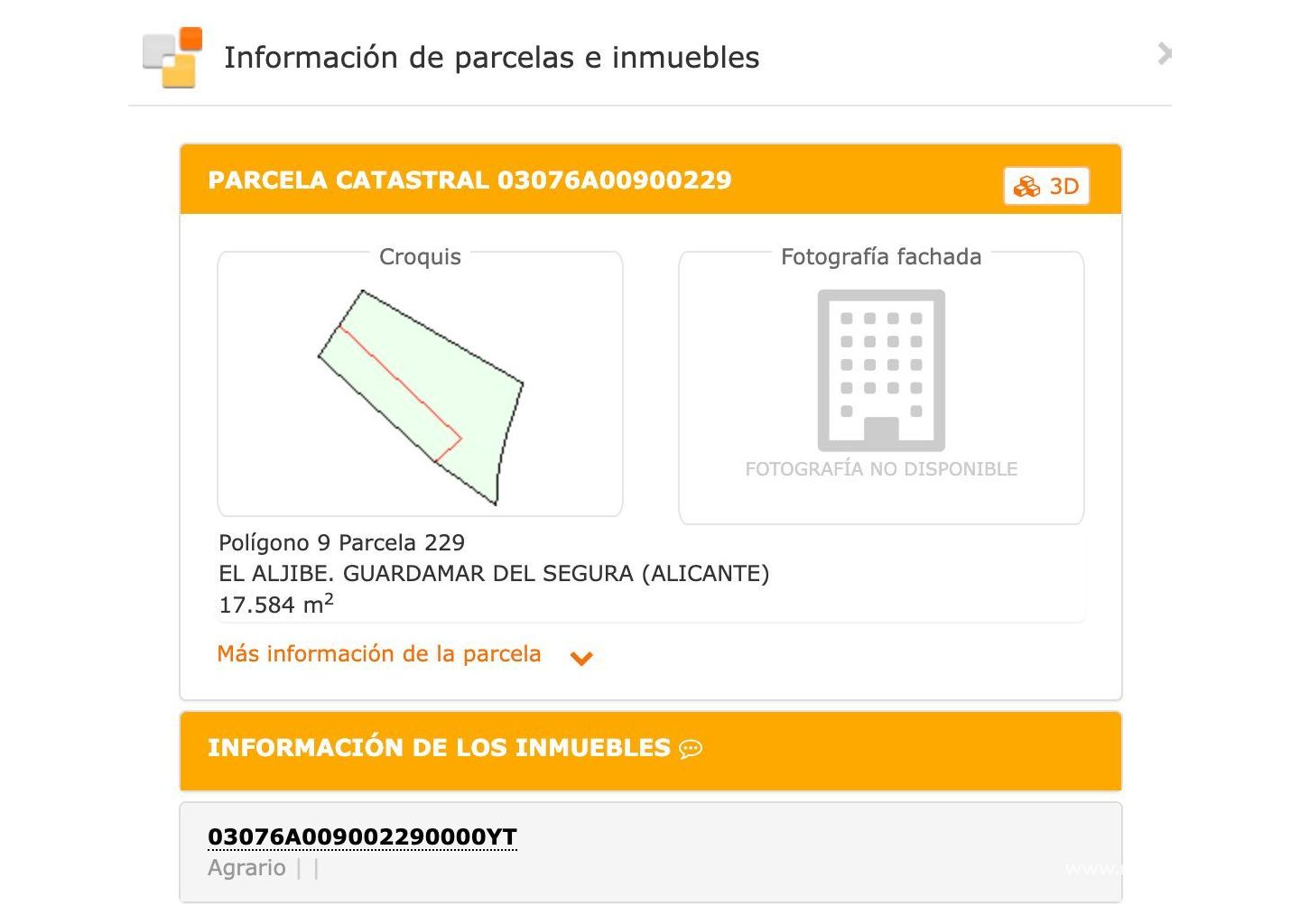 Rustic plot in El Aljibe, Guardamar del Segura (Alicante) with 17,584 m² according to Cadastre (Polygon 9, Plot 229).