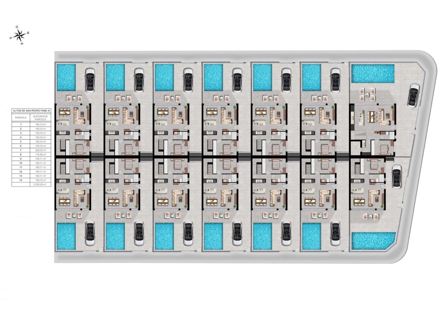Discover the third phase of this exclusive residential project in San Pedro del Pinatar, where modern architecture meets comfort and functionality. These 14 semi detached villas are designed with a minimalist style and high quality finishes, offering an elegant and sophisticated living experience on the Costa Calida. Each villa features 3-4 spacious bedrooms, 3 bathrooms, private swimming pool, terraces and a private garden, creating the perfect environment for privacy, relaxation and Mediterranean outdoor living.