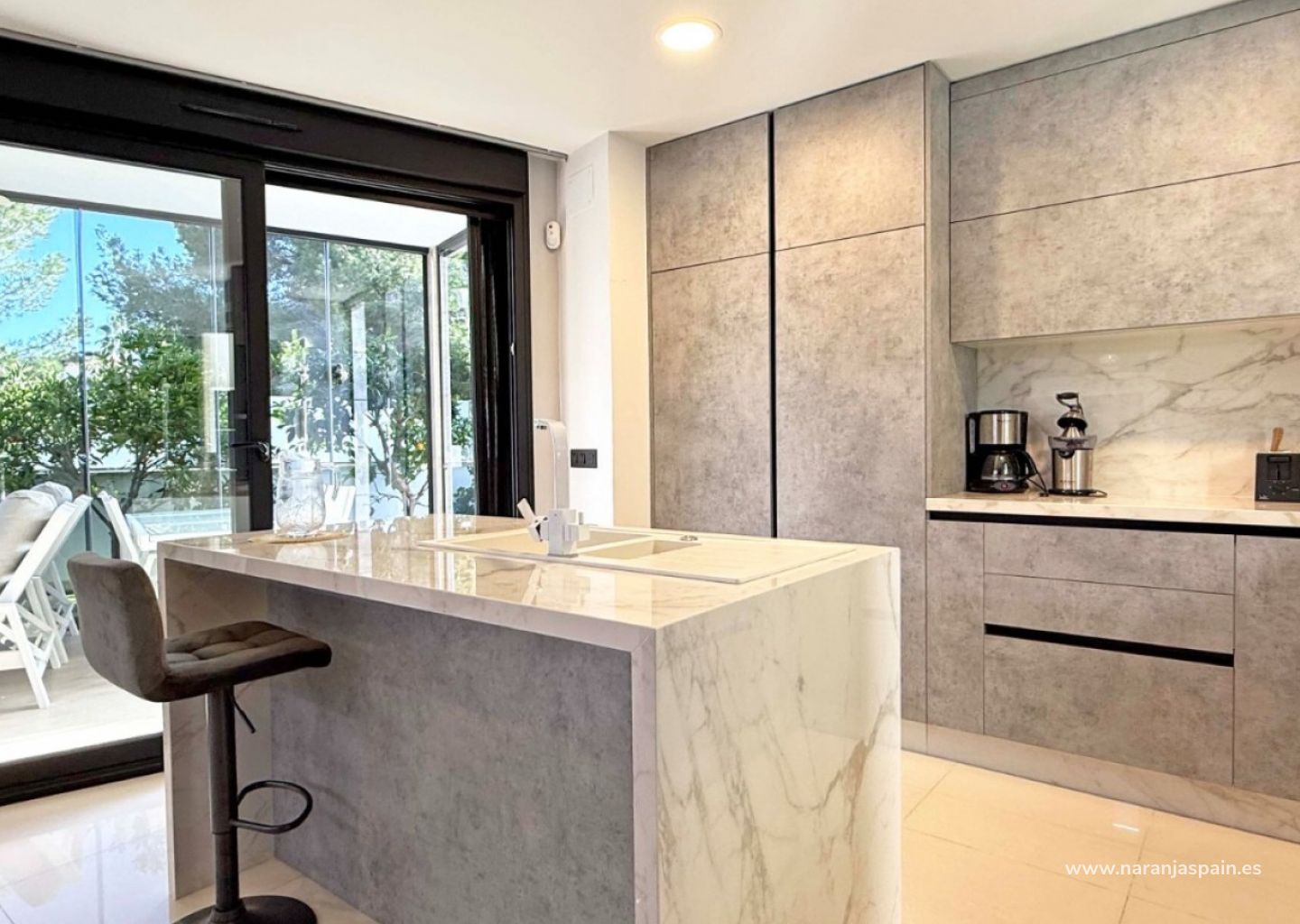 This stunning corner villa, nestled at the end of a peaceful cul-de-sac in the sought-after area of Villamartin, offers the perfect blend of luxury and modern living. With 3-4 spacious bedrooms and 3 bathrooms (2 of which are en suite), this home provides ample space for family living and guests. The open-plan living area is designed for modern comfort, featuring a sleek, contemporary kitchen and a bright, airy living room that flows seamlessly into the private conservatory, ideal for year-round relaxation. The villa boasts a private, heated pool, perfect for enjoying the sunny Mediterranean climate in ultimate privacy. For those seeking wellness and relaxation, the property includes a sauna and underfloor heating throughout, ensuring comfort in every season. Additional features include a convenient WC, a spacious basement offering endless possibilities for storage or additional living space, and off-street parking. The luxurious finishings and attention to detail throughout the villa elevate it to a standard of modern elegance, making it an exceptional residence in one of Villamartin's most desirable locations.