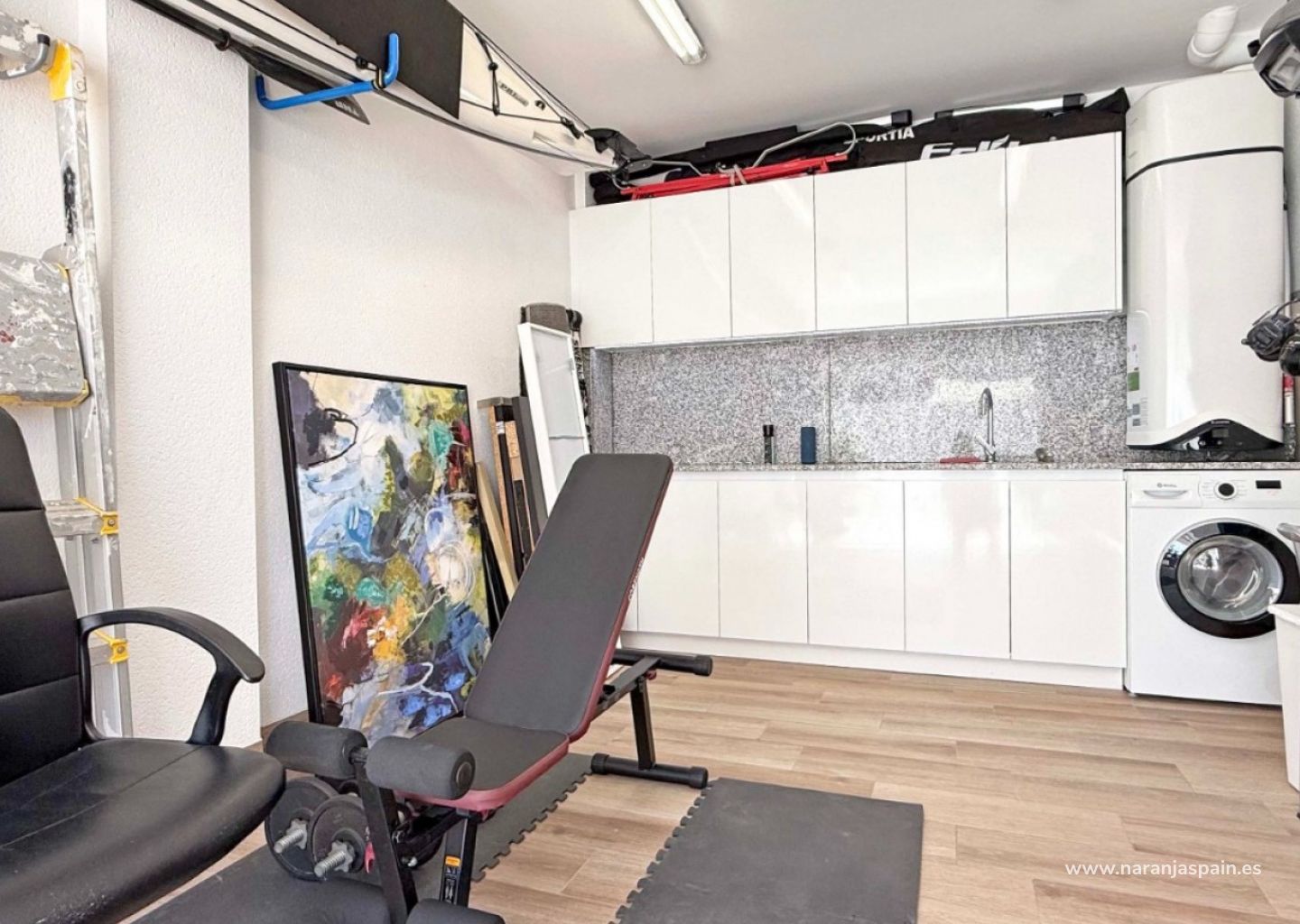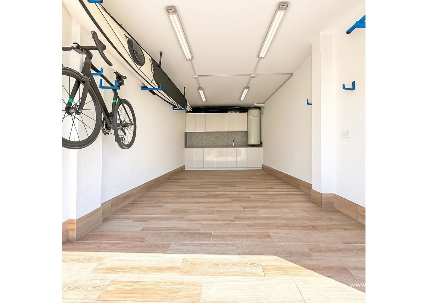 Private garage with custom storage cabinets. Opportunity to convert into a third bedroom with bathroom.