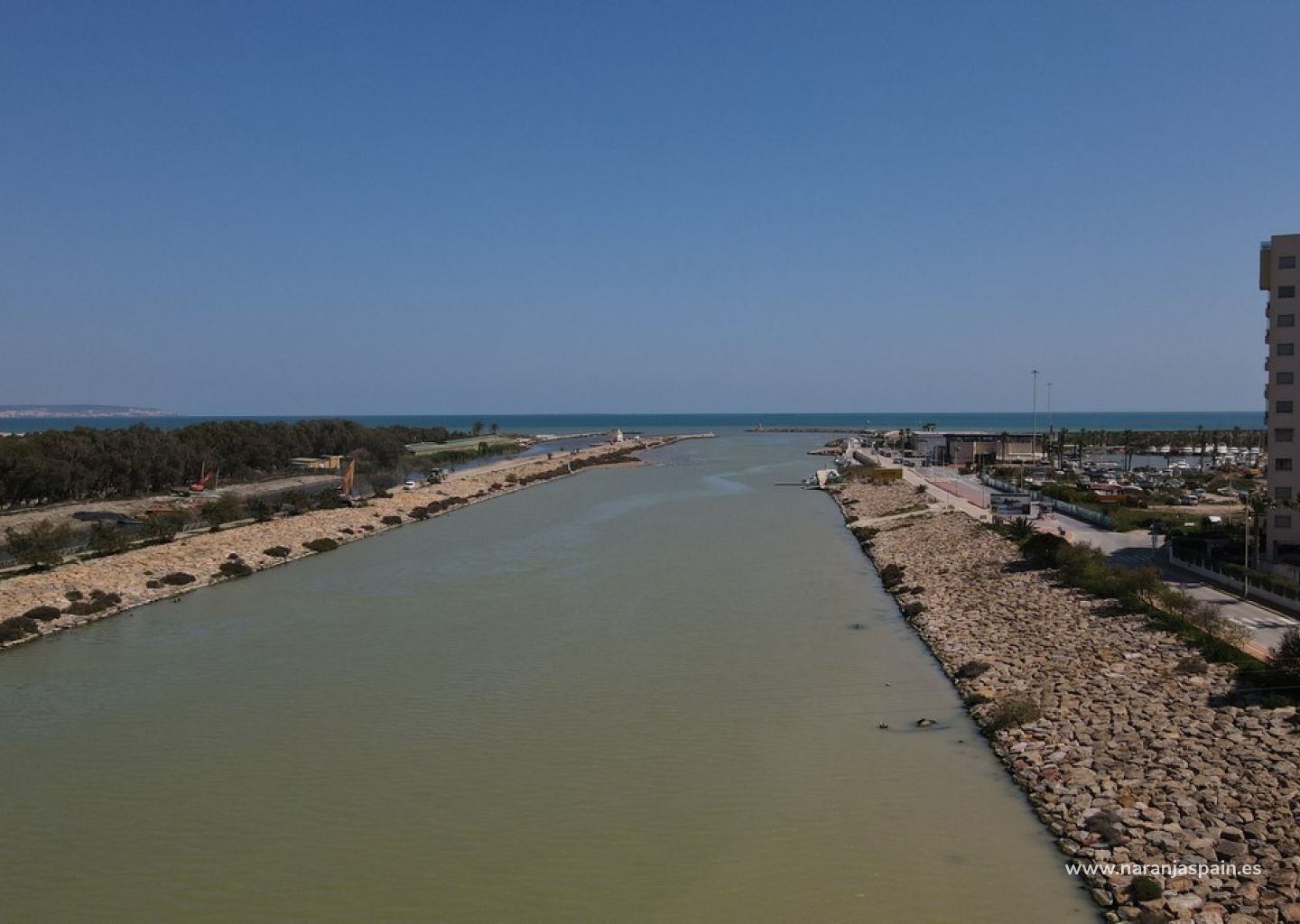 Three-bedroom ground floor apartment located in Guardamar del Segura. This charming property is situated along the river road leading to the Lonja and the marina, just a few minutes from the town center. The marina and the beach are only a five-minute walk away.