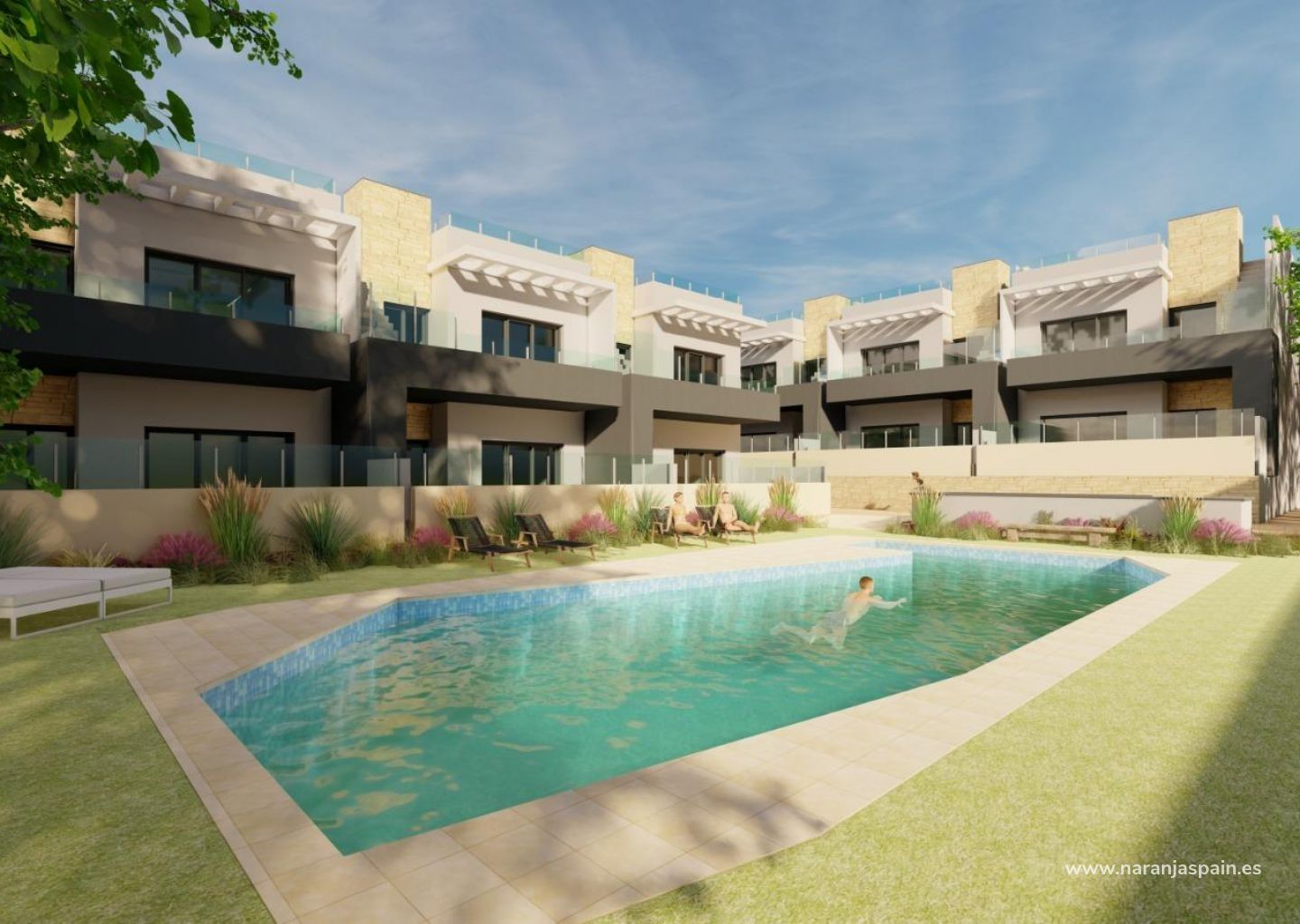 Kiekviename bungale įrengta atvira virtuvė, integruota į svetainę, įmontuotos spintos, privati terasa bei ortakinių oro kondicionavimo sistemų paruošimas. Karštas vanduo tiekiamas naudojant efektyvią aeroterminę sistemą, kuri užtikrina mažesnes energijos sąnaudas. Gyvenamajame komplekse taip pat yra didelis bendruomeninis baseinas, apsuptas gražiai sutvarkytų sodų – puiki vieta atsipalaiduoti ir mėgautis saulėtu Kosta Blankos klimatu.