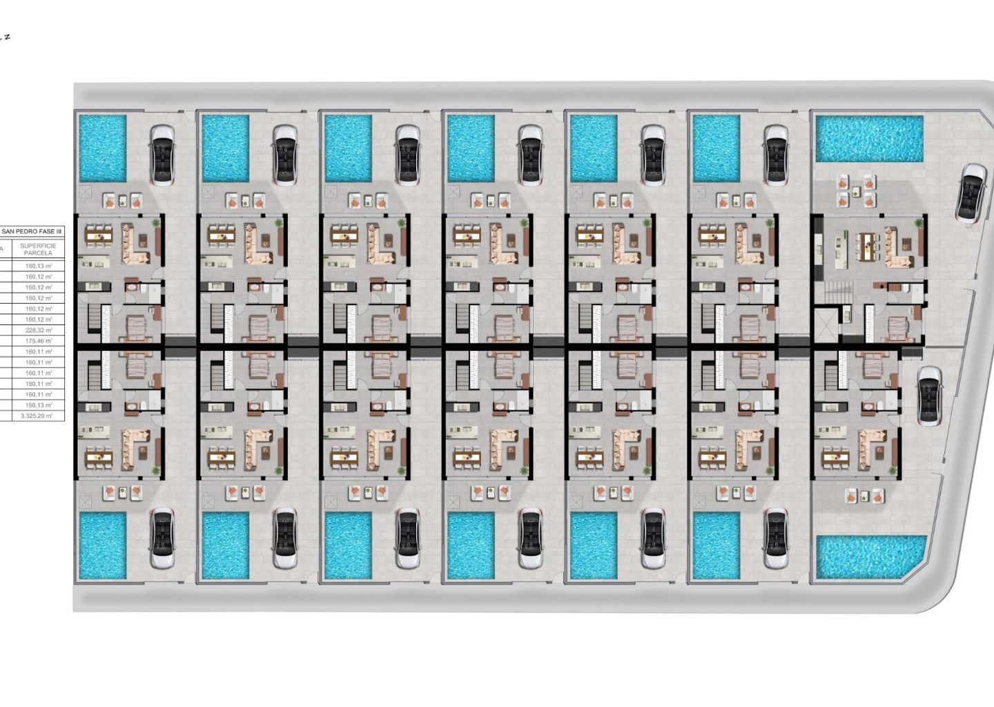 Atraskite trečiąjį šio išskirtinio gyvenamųjų namų projekto San Pedro del Pinatar etapą, kuriame moderni architektūra susilieja su komfortu ir funkcionalumu. Šios 14 dviejų aukštų vilos yra suprojektuotos minimalistiniu stiliumi ir aukštos kokybės apdaila, siūlančios elegantišką ir rafinuotą gyvenimo patirtį Costa Calida. Kiekvienoje viloje yra 3-4 erdvūs miegamieji, 3 vonios kambariai, privatus baseinas, terasos ir privatus sodas, kurie sukuria puikią aplinką privatumui, poilsiui ir Viduržemio jūros regiono gyvenimui lauke.