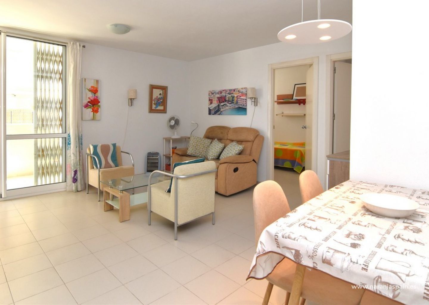 Trijų miegamųjų butas pirmame aukšte, esantis Guardamar del Segura mieste. Šis jaukus būstas yra šalia upės kelio, vedančio link Lonja ir prieplaukos (Marina), vos kelios minutės nuo miesto centro. Iki prieplaukos ir paplūdimio galima nueiti pėsčiomis maždaug per penkias minutes.