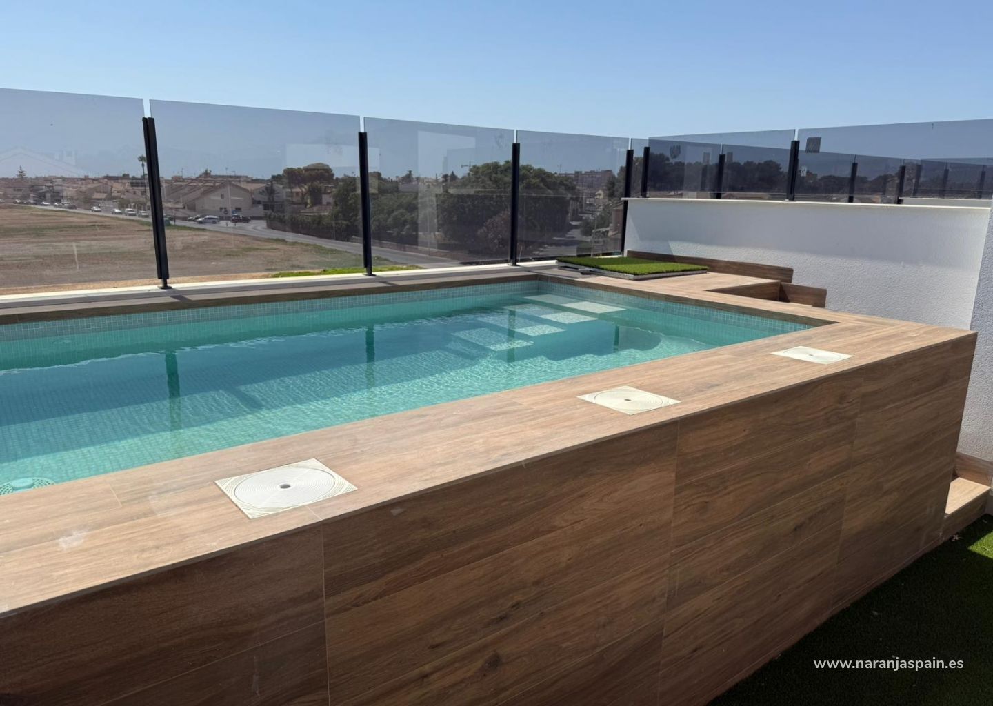 Pirmame aukšte esančiuose namuose yra erdvios privačios terasos su galimybe už papildomą kainą įrengti privatų baseiną. Viršutiniame aukšte esančiuose namuose yra privatus stogo solariumas su jau įrengtu baseinu, suteikiantis puikią erdvę atsipalaiduoti ir mėgautis Viduržemio jūros saule.