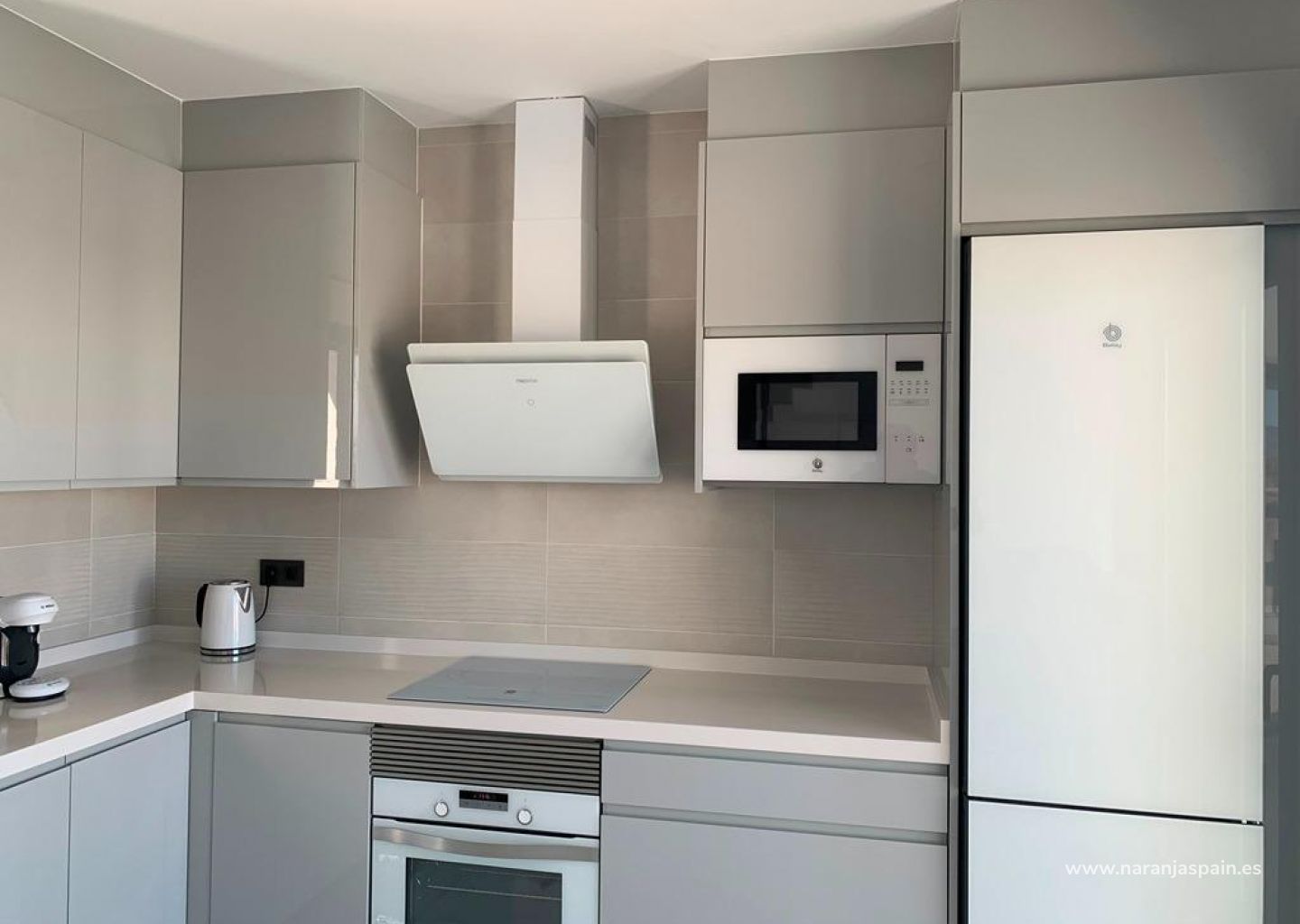 Kjøkken inkluderer skap med standarddører og håndtak, i henhold til medfølgende tegninger, vask og kran i rustfritt stål, forhåndsinstallasjon for stekeovn, oppvaskmaskin og avtrekk. Ulike benkeplater i granitt er inkludert i budsjettet, andre benkeplater i stein er tilgjengelig som ekstrautstyr. Hvitevarer er ikke inkludert.