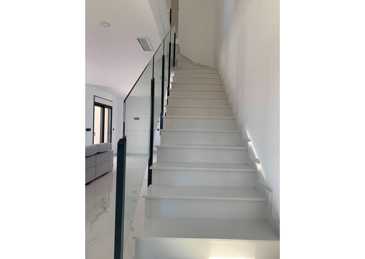 Marmortrapp (kremfarget, hvit eller grå) og rekkverk inkludert, samt rekkverk til verandaen.