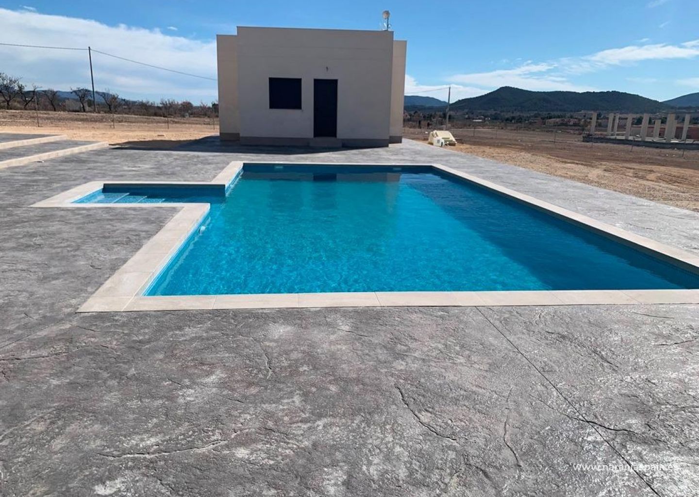 Alle husene har 2 m stampet betongterrasse rundt bassenget (farge og mønster etter eget valg), 1 m rundt huset, inngjerdet inngang, 3 000 m2 gjerde, forhåndsinstallert luftkondisjonering, standardkjøkken, sikkerhetsdør, tyske vippe- og svingvinduer (eller skyvevinduer om ønskelig), innebygd peis og skorstein, forhåndsinstallasjon for tv og internett, grusinnkjørsel pluss noen meter rundt huset, septiktank.