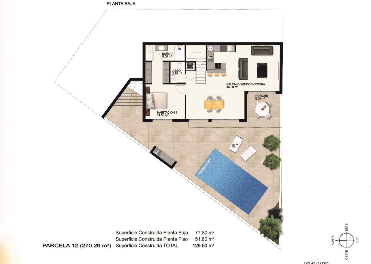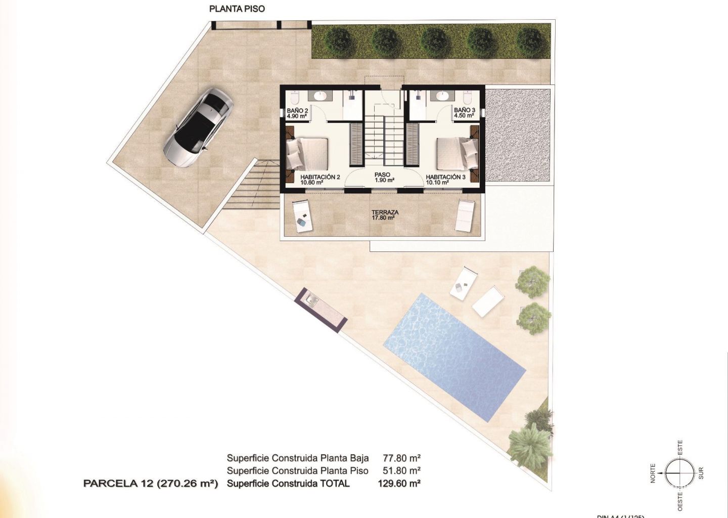 Villaer bygget over 2 etasjer, med 3 soverom og 3 bad, åpen kjøkkenløsning med stue, garderober, terrasse, privat hage med basseng og parkeringsplass.