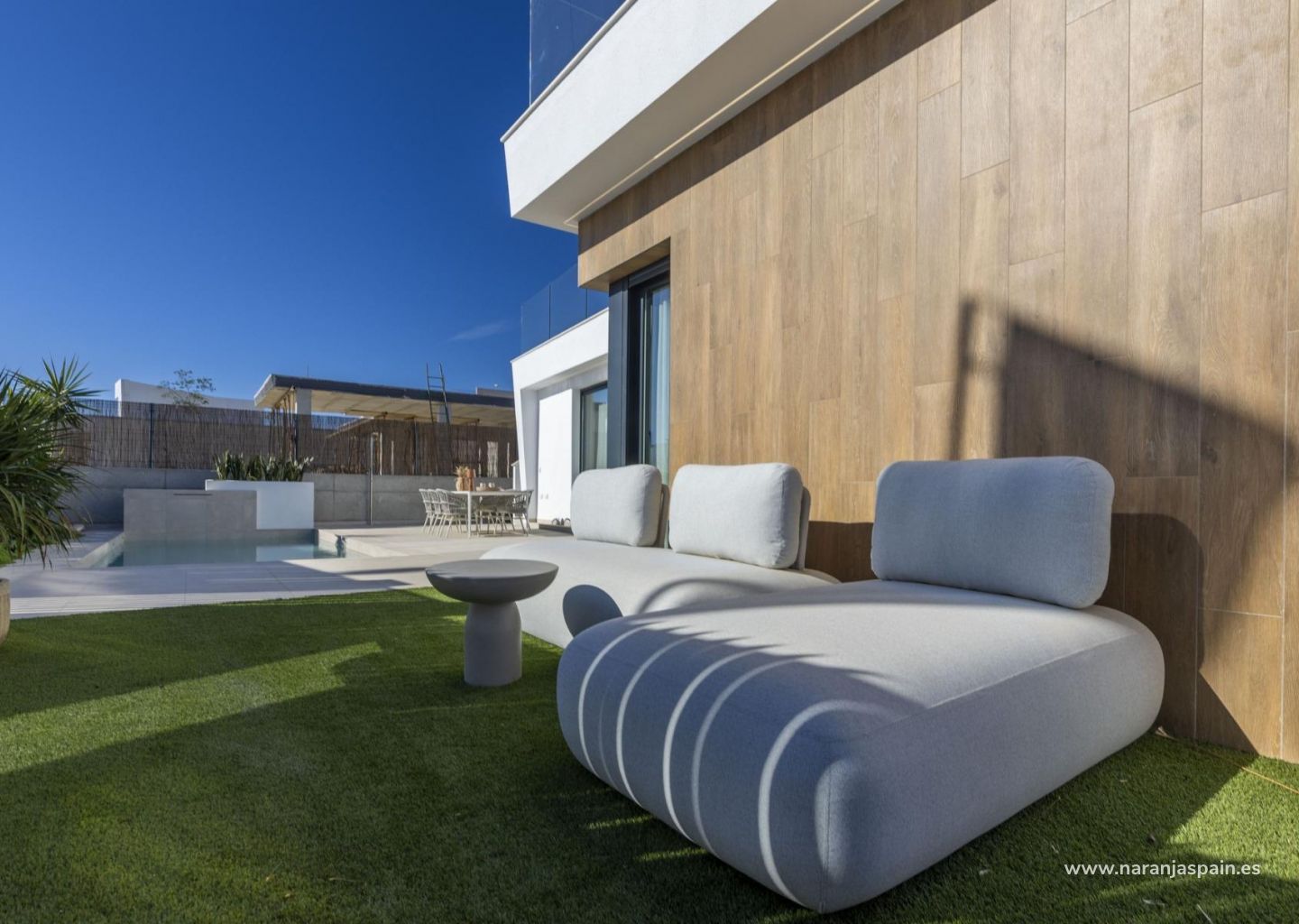 Villaer på ett plan bygger på tomtene fra 300 m2 med 3 soverom, 2 bad og et privat basseng med flere alternativer der kvaliteten er høyest og hvor vi integrerer eksteriøret med interiøret i boligen.