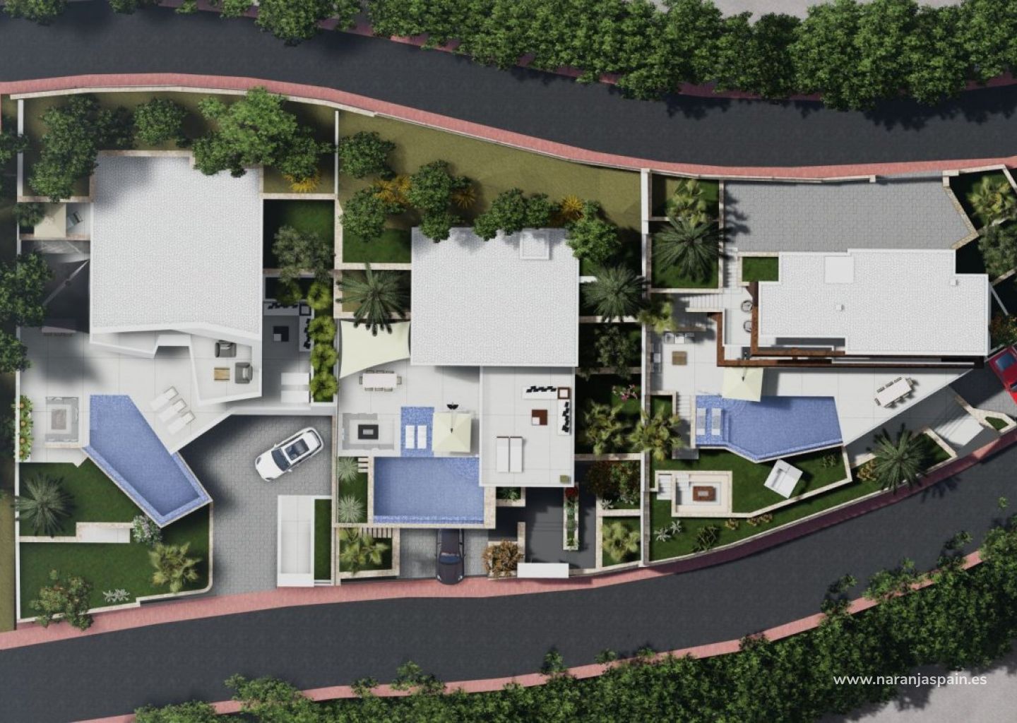 Nybygget villa har 4 soverom, 5 bad, gjestetoalett, åpen kjøkkenløsning med stue, innebygde garderober, privat hage med, air condition, heis, garasje, parkering, grill, veranda, boblebad, bod, elektriske apparater,