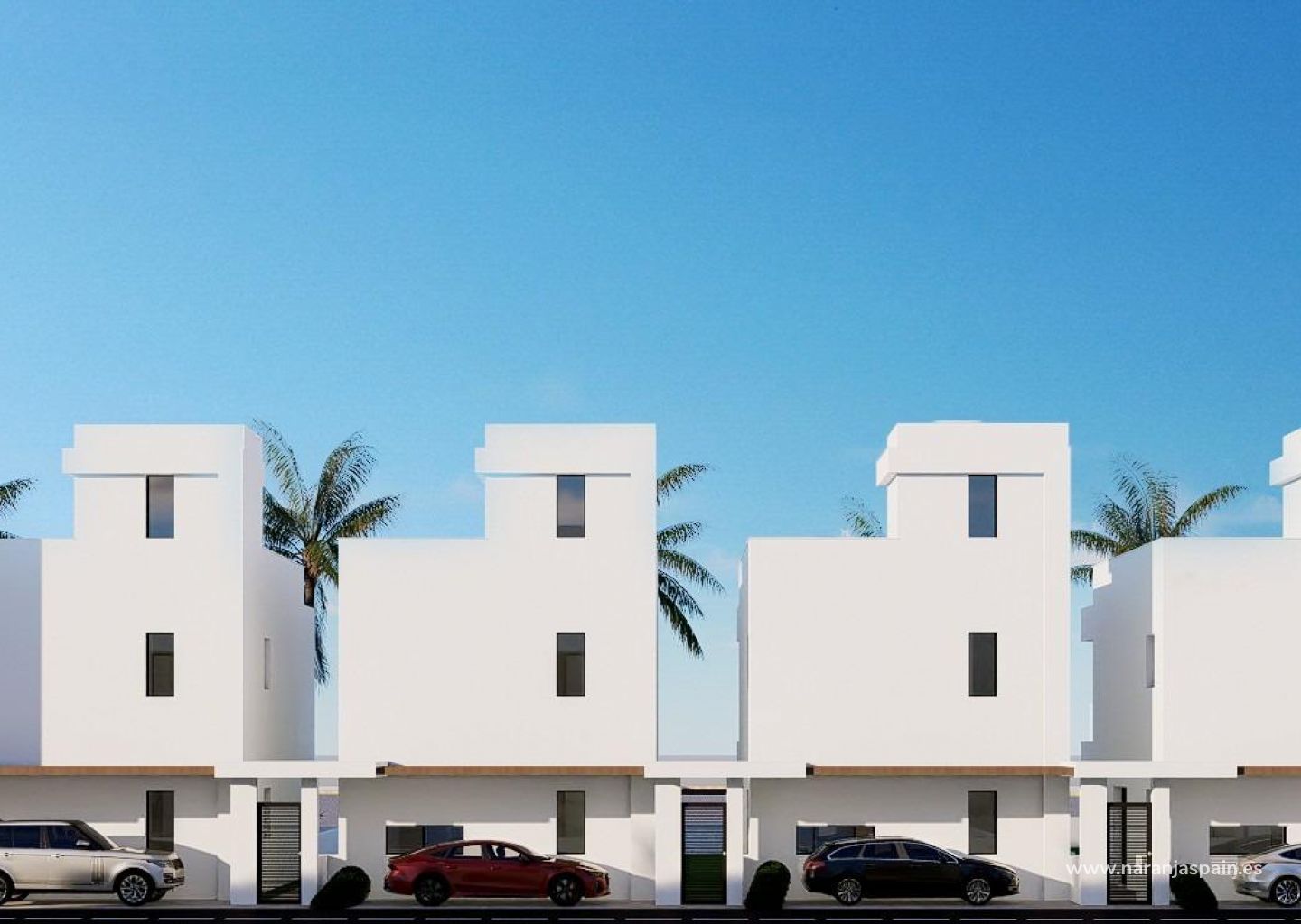 Moderne eiendommer bygget over 3 etasjer, har 3 soverom, 2 bad, åpen kjøkkenløsning med stue, garderober, klimaanlegg med ledning, kjeller, solarium, privat hage med basseng og parkeringsplass.