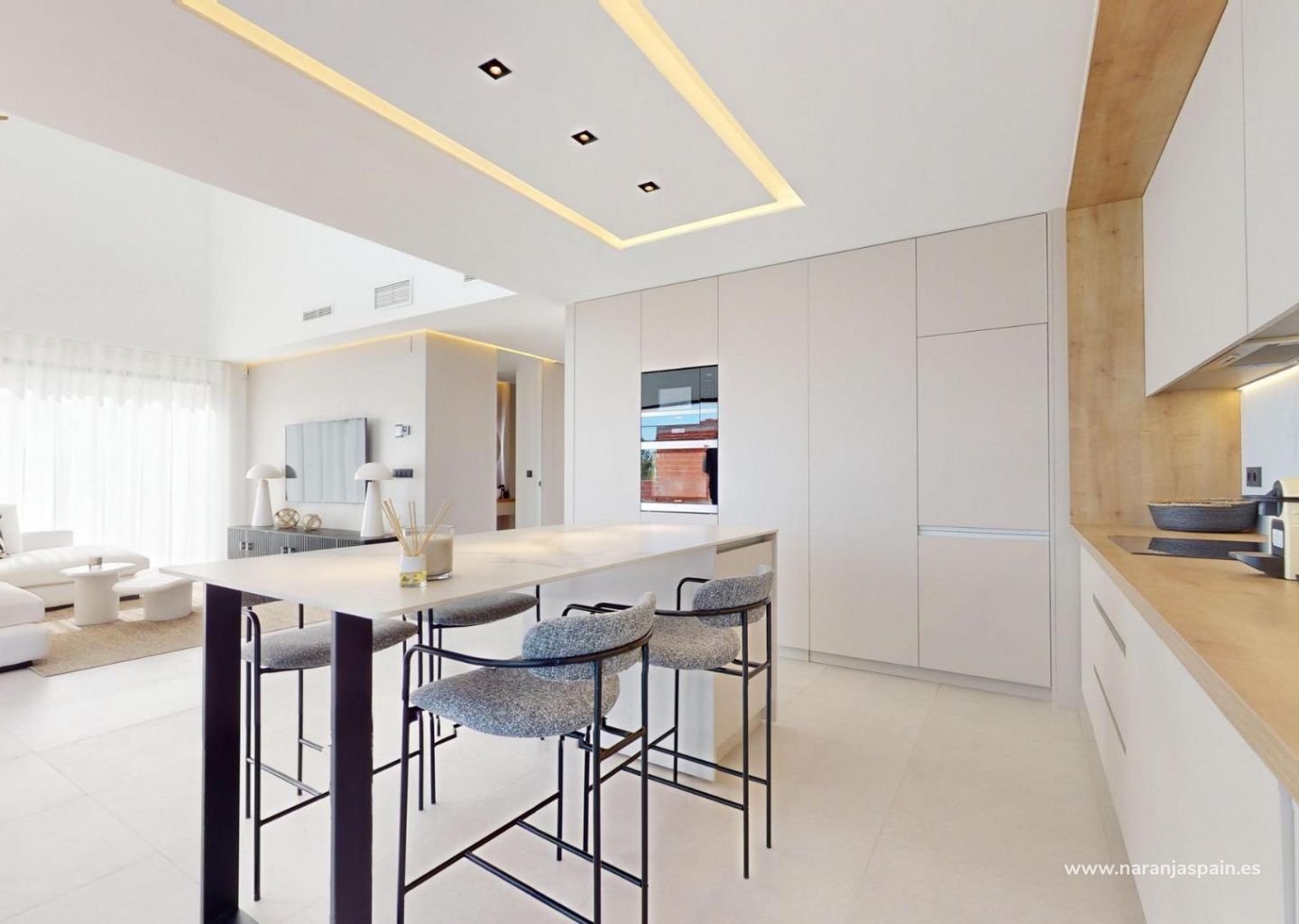 Villaene leveres med fullt utstyrt kjøkken, apparater fra Siemens: induksjonstopp, stekeovn, mikrobølgeovn, dekorativ hette, vask i rustfritt stål, dobbel vask, kjøleskap, panelt og integrert.