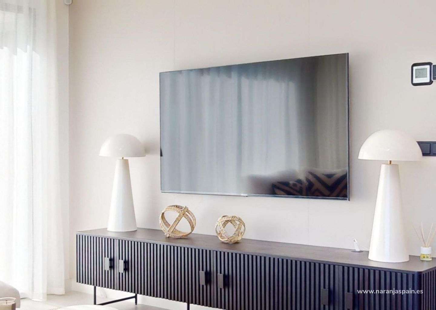 Komplett bad: hengende toalett, kraner, oppvarmet håndklestativ, vask fra Roca. Klimaanlegg, varmt vann og gulvvarme i hvert hus av Panasonic aerotermisk energi. Evighetsbasseng. Innvendig snekring: innerdører 2,80 cm høye, garderober. Utvendig snekring: Dobbelt glass, aluminiumsprofil. Porselen steintøy gulv.