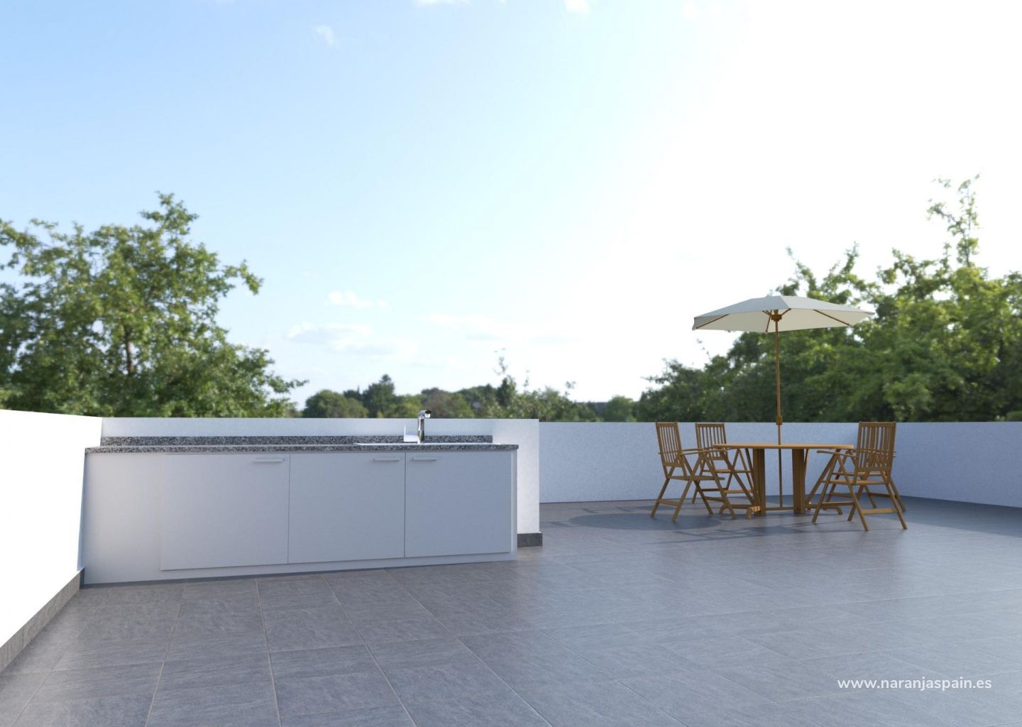 Utendørs solarium med sommerkjøkken, perfekt for underholdning.