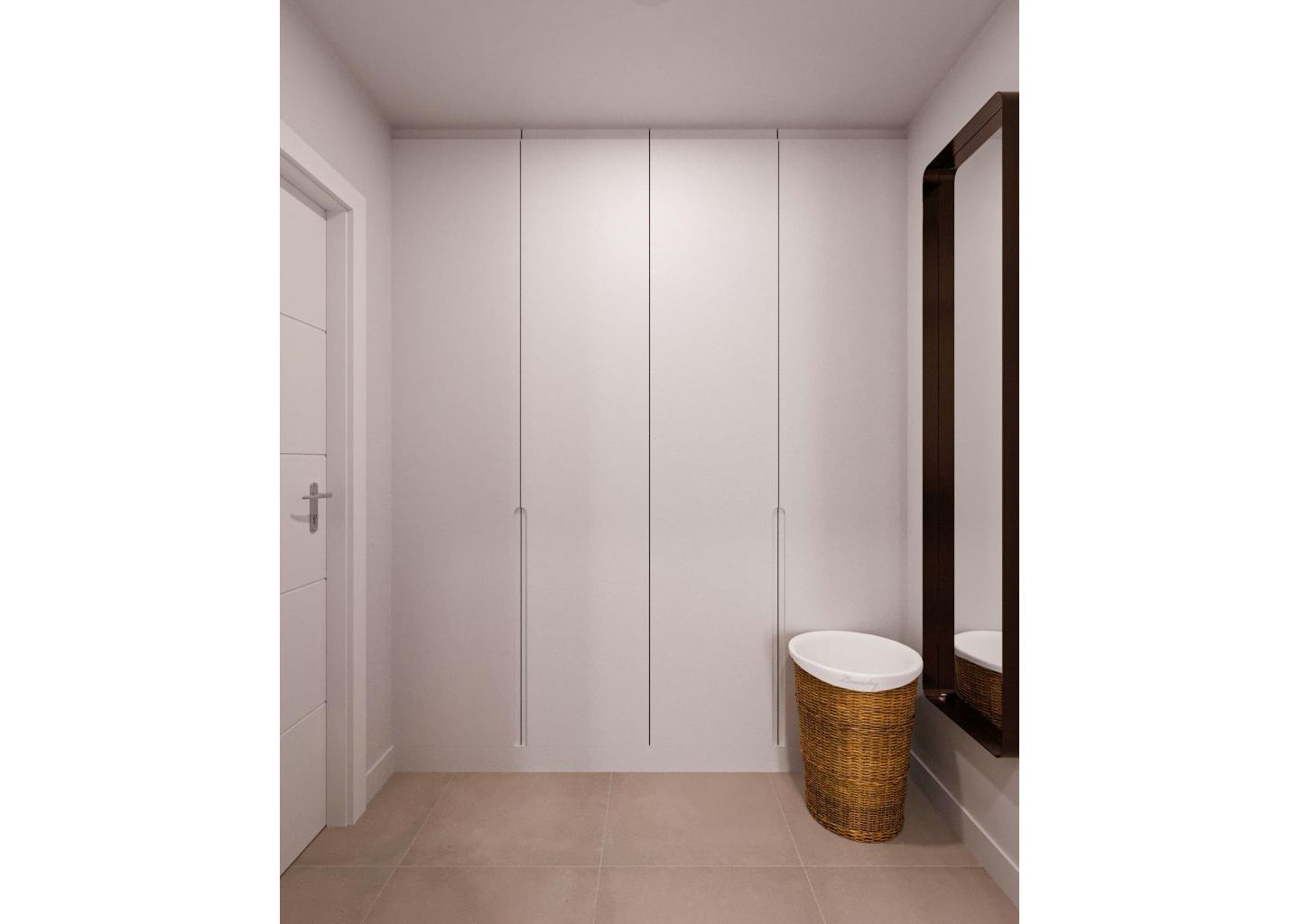 Garderobeskap med bagasjerom, foret på innsiden, lakkert i hvitt.