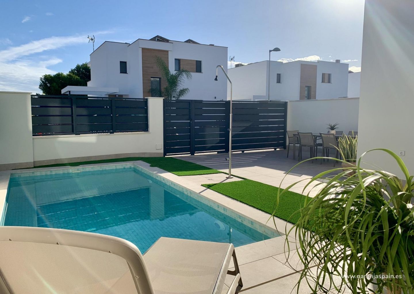 Nybygde luksusvillaer med privat basseng i Roda Golf Eksklusive villaer med førsteklasses beliggenhet på golfbanen Oppdag disse fantastiske nybygde villaene som ligger i Roda Golf, Murcia, et førsteklasses sted for både golfentusiaster og strandelskere. Disse moderne boligene ligger i rolige, naturlige omgivelser og tilbyr en perfekt blanding av luksus, komfort og eksklusivitet. Disse villaene ligger i andre linje i Roda Golf, med fantastisk utsikt over de frodige, grønne fairwayene, bare 10 minutter fra strendene i Mar Menor og 20 minutter fra Murcia internasjonale lufthavn. Moderne villaer designet for komfort og avslapning Disse moderne villaene har 3 soverom og 3 bad, og er designet for å maksimere naturlig lys og utendørs opphold. Hvert hjem inkluderer: Privat svømmebasseng - et perfekt sted å kjøle seg ned og slappe av. Romslige terrasser i begge etasjer - ideelt for å spise og slappe av. Stor takterrasse - Nyt solskinn og panoramautsikt året rundt. Funksjoner og finish av høy kvalitet Hver villa er bygget med materialer av topp kvalitet og moderne finish, noe som sikrer både stil og holdbarhet: Aluminiumslakkert utvendig snekkerarbeid med termisk brudd og doble vinduer. Motoriserte persienner i aluminium for ekstra komfort. Dusjvegger i glass på alle bad. Innebygde garderober i alle soverom, fullt foret og utstyrt med skuffer. Fullt utstyrt kjøkken med hvitevarer inkludert. Forhåndsinstallert kanalisert klimaanlegg i stuen og soverommene. Forhåndsinstallasjon for et sommerkjøkken i solarium i første etasje. Varmtvannssystem med justerbar elektrisk varmeovn og 1,5 kW solcellepaneler for energieffektivitet. En førsteklasses beliggenhet nær golf, strender og mer Roda Golf er et av de mest prestisjefylte golfresortene i Murcia, og tilbyr førsteklasses fasiliteter, en bane i verdensklasse og fredelige omgivelser. Denne eksepsjonelle beliggenheten sikrer enkel tilgang til: Roda Golfs klubbhus - Gangavstand. Strendene i Mar Menor - 10 minutter med bil. Middelhavsstrender - 15 minutter med bil. Murcia internasjonale lufthavn - 20 minutter med bil. Alicante lufthavn - 55 minutter med bil. La Zenia Boulevard kjøpesenter - 30 minutter med bil. Flere golfbaner i nærheten - inkludert La Serena, Lo Romero og Las Colinas. Den perfekte investerings- og ferieboligen Med sin fantastiske beliggenhet, moderne design og luksuriøse funksjoner er disse villaene en ideell mulighet for investering, ferie eller permanent opphold. Kontakt oss i dag for å få mer informasjon eller avtale et besøk!