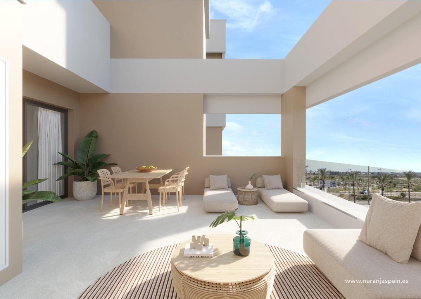 Eksklusive nybyggede leiligheter i et privat feriested 4 km fra stranden Et luksuriøst boligkompleks med 24 timers sikkerhet Dette nye boligkomplekset ligger i et prestisjefylt privat feriested i Murcia-provinsen, og tilbyr 24 leiligheter med moderne design, omgitt av grøntområder og med tilgang til et imponerende utvalg av førsteklasses fasiliteter og tjenester. Anlegget har 24-timers vakthold, begrenset adgang og rikelig med rekreasjonsområder, noe som gjør det til et ideelt alternativ for dem som søker eksklusivitet, ro og et privilegert naturmiljø. Moderne leiligheter med ulike planløsninger Boligene er designet med høy kvalitet og en planløsning som er optimalisert for komfort: Leiligheter med 2 og 3 soverom og 2 komplette bad. Amerikansk kjøkken integrert i stuen, med moderne og funksjonell design. Store terrasser med utsikt over grøntområdene. Leiligheter i første etasje med privat hage, mellometasjer med store terrasser og toppleiligheter med privat solarium. Parkeringsplass og bod inkludert. Topp kvalitet på innredning og inventar Leilighetene har et utvalg av toppmoderne materialer og teknologi: Elektriske persienner på soverommene. Svært effektivt aerotermisk system for varmt vann til husholdningen. Fullt installert luftkondisjonering med kanaler (varmt og kaldt). Gulvvarme på badene. LED-belysning med lavt forbruk. Termo-lakkert aluminiums snekkerverk med termisk brobrudd. Urbanisasjonen har et felles svømmebasseng, lekeplass for barn og paddle-tennisbane. Tjenester på feriestedet Anlegget der dette prosjektet ligger, er designet rundt et imponerende grøntområde på 126 000 m², som inkluderer: Minigolfbane. Tennisbaner. Gang- og sykkelstier. Lekeplasser og fritidsområder for barn. Klubbhus med restaurant og sosiale områder. Hundeparker. En spektakulær kunstig innsjø på 17 000 m² med krystallklart vann, hvite sandstrender og flere strandbarer. Strategisk beliggenhet nær strender og fasiliteter Dette eksklusive komplekset har en privilegert beliggenhet, med enkel tilgang til de viktigste severdighetene i regionen: Los Alcazares-stranden - mindre enn 4 km unna. Golfbaner i nærheten - flere alternativer innen få minutter. Cartagena - mindre enn 15 minutters kjøring. Murcia lufthavn - 22 km unna (ca. 20 minutters kjøretur). Invester i en unik livsstil i Murcia-regionen Dette komplekset tilbyr en uslåelig kombinasjon av kvalitet, beliggenhet og fasiliteter, og er ideelt som permanent bolig, feriebolig eller investeringseiendom. Kontakt oss i dag for mer informasjon eller for å avtale visning.
