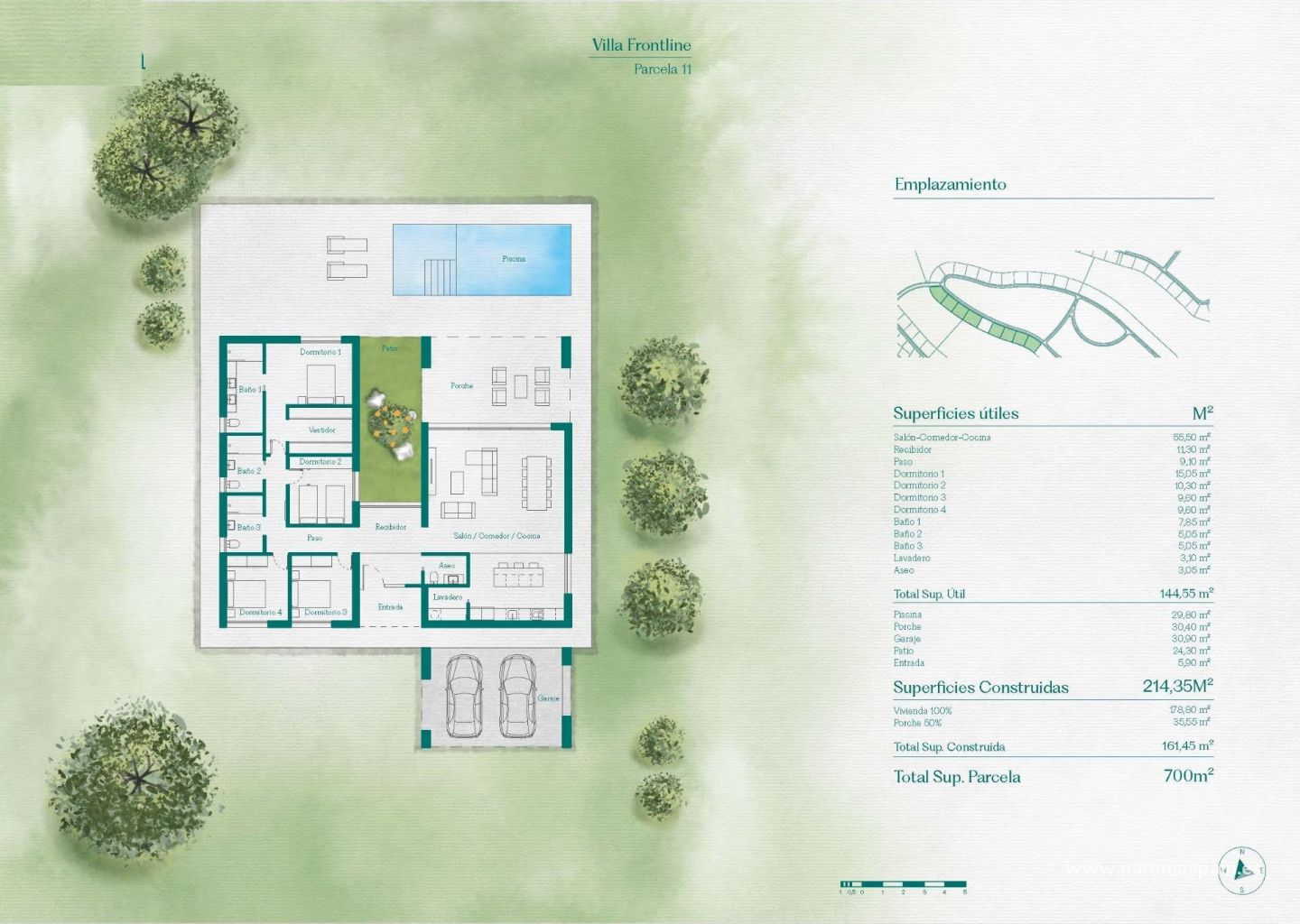 Hver eiendom har en romslig planløsning med 4 soverom, 3 bad og et gjestetoalett, i en etasje. Med sjenerøse tomter på rundt 700 kvadratmeter og et bebygget areal på 214 kvadratmeter, tilbyr disse boligene god plass til både innendørs og utendørs liv.