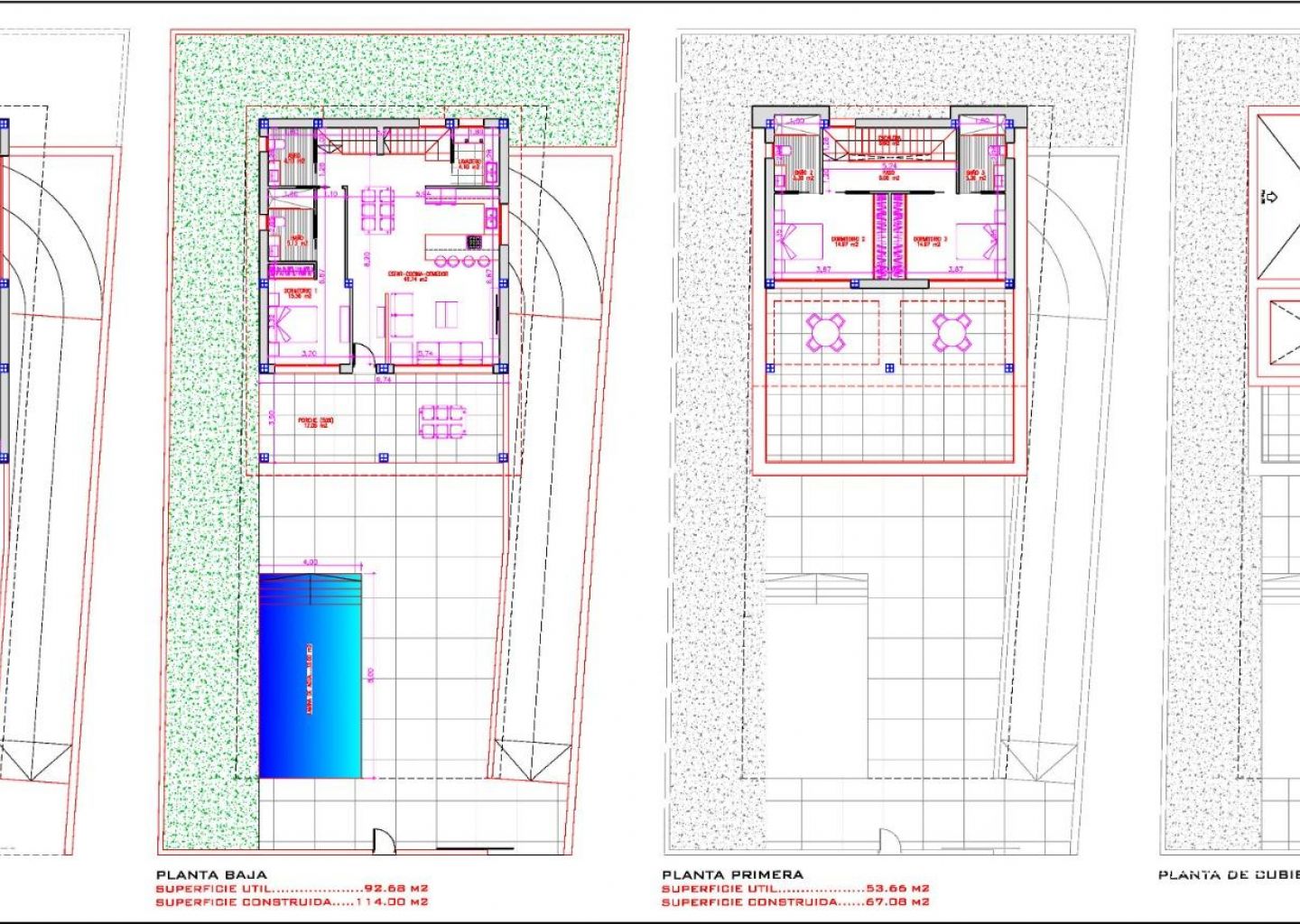 I underetasjen er det en stor stue med åpen kjøkkenløsning, et rom med utgang til uteområdet, 2 bad og et vaskerom. I andre etasje finner du to soverom med hvert sitt bad, samt en stor terrasse. Denne villaen tilbyr rikelig med utendørs oppholdsrom, med god forbindelse til hagen og bassengområdet, med forskjellige steder å slappe av ute, som den 35 m2 store overbygde terrassen i første etasje. Det er også et 8x4 meter stort svømmebasseng. Med førsteklasses materialer er dette hjemmet bygget for å vare og se flott ut.