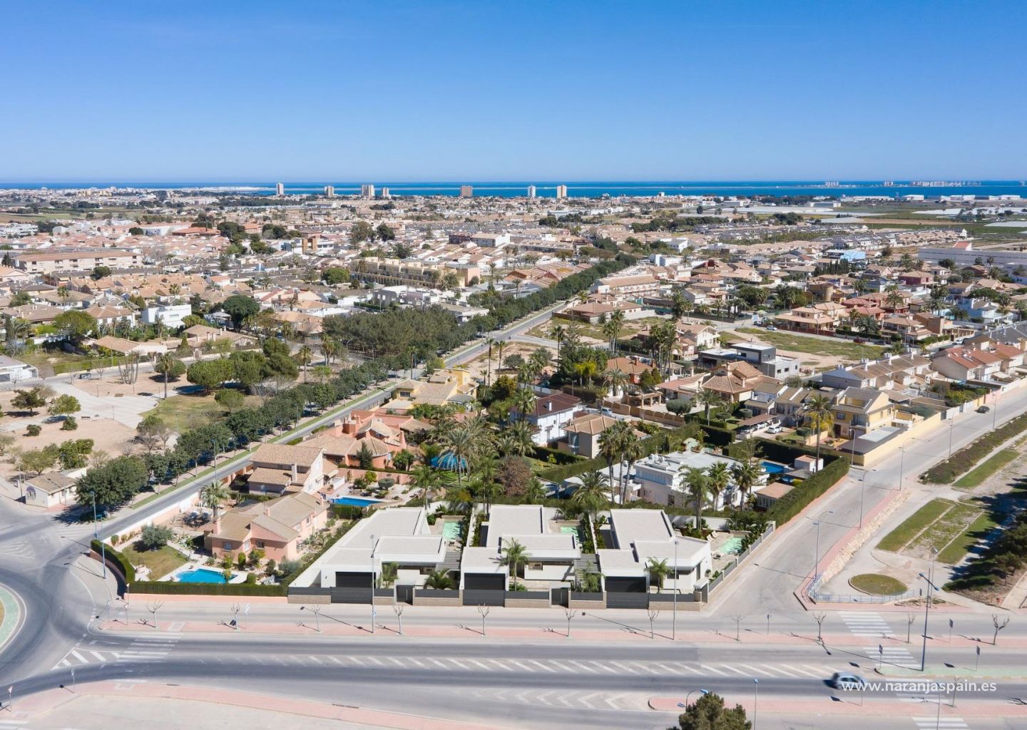 Tre eksklusive villaer i et boligområde i San Javier med 600 m2 tomt og 217 m2 bygget areal i en etasje, privat basseng og store hageområder.