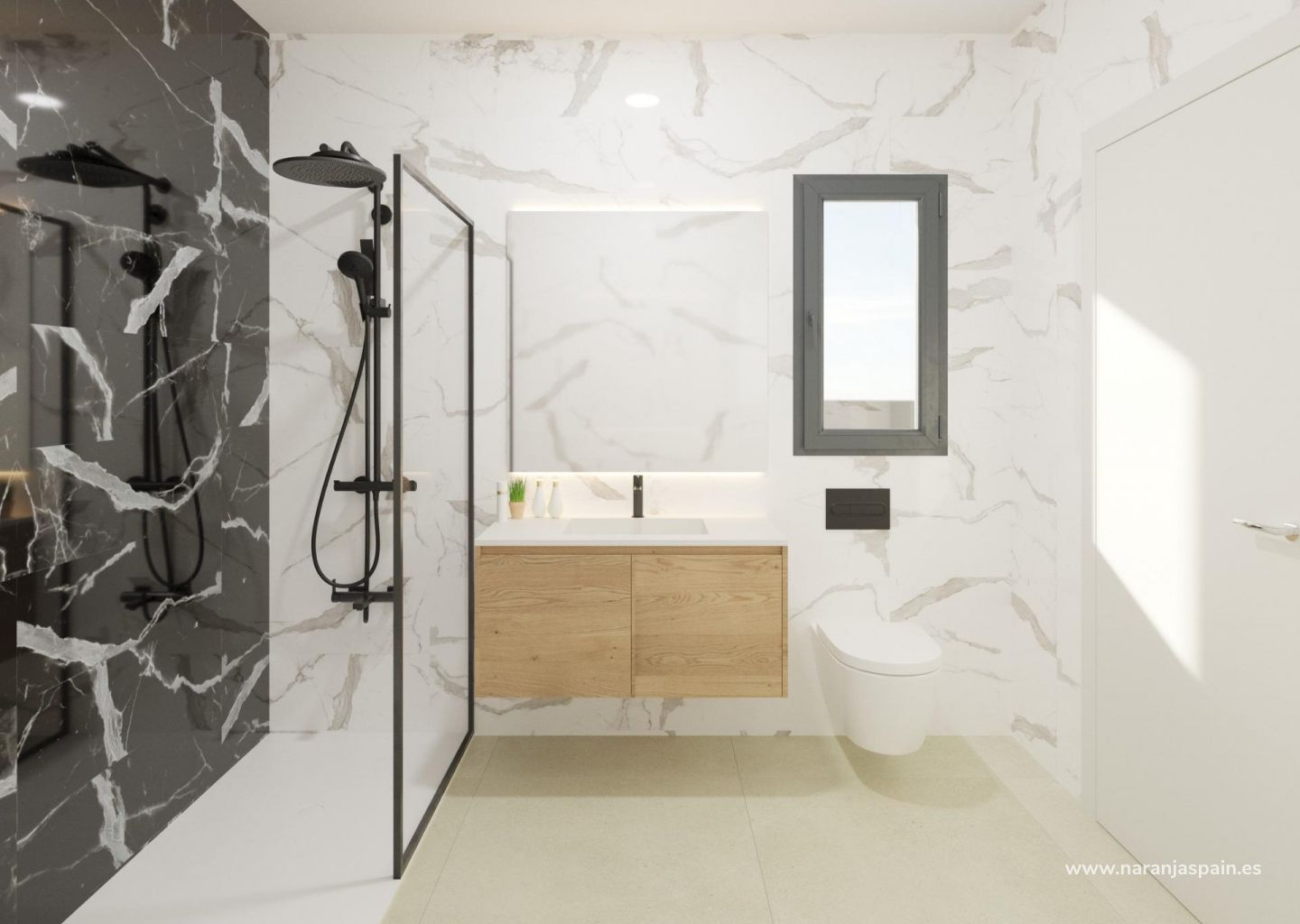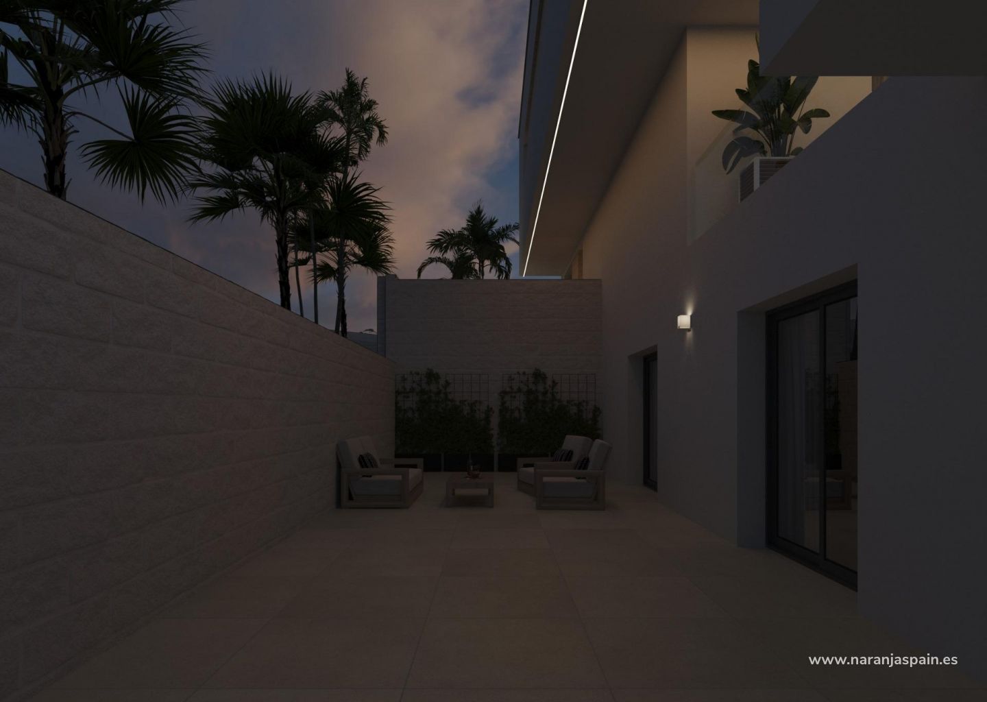 Andre etasje med to soverom med eget bad, hvert med tilgang til private terrasser.