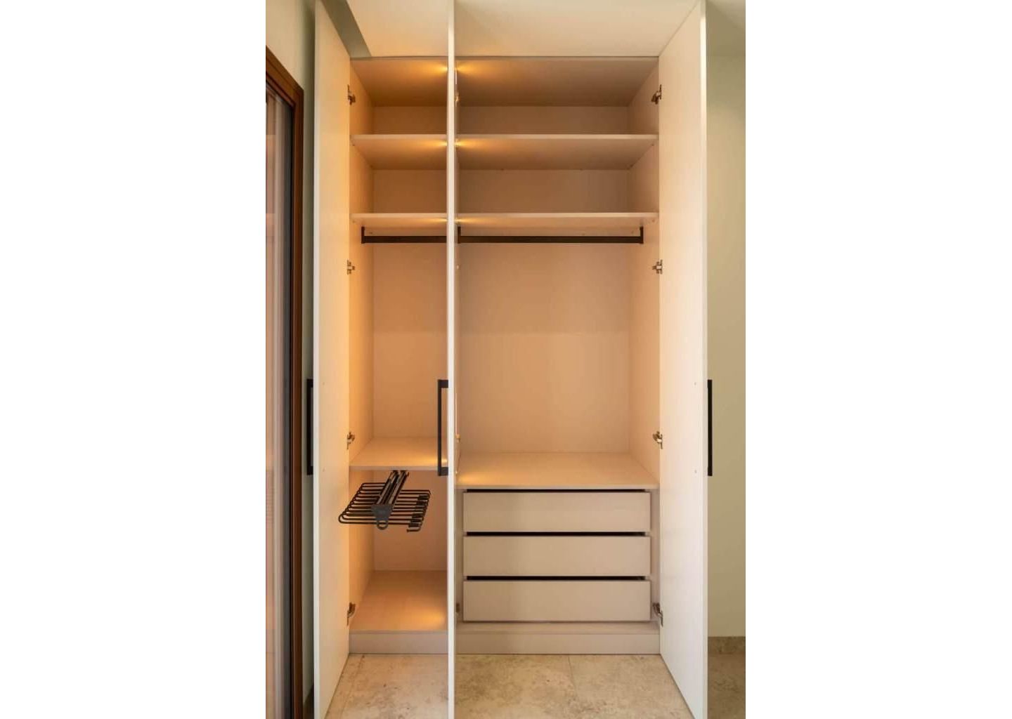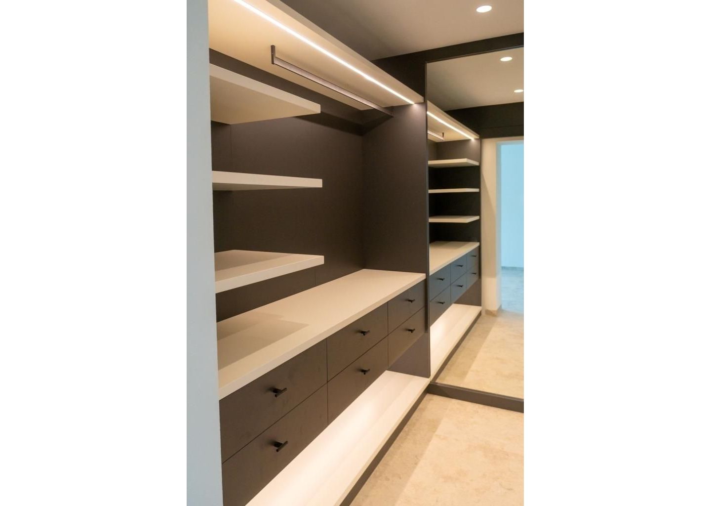 Øvre etasje har en innbydende entré og et moderne åpent kjøkken fullt utstyrt med førsteklasses hvitevarer, inkludert dobbel kjøleskap med fryser, stekeovn, mikrobølgeovn, oppvaskmaskin og induksjonstopp med innebygd avtrekk. Den lyse stue-spisestuen åpner ut mot hovedterrassen med spektakulært privat basseng og solterrasse. Soveområdet består av tre soverom, hvorav ett med eget bad, samt et felles bad. Alle soverommene har direkte tilgang til bassengterrassen.