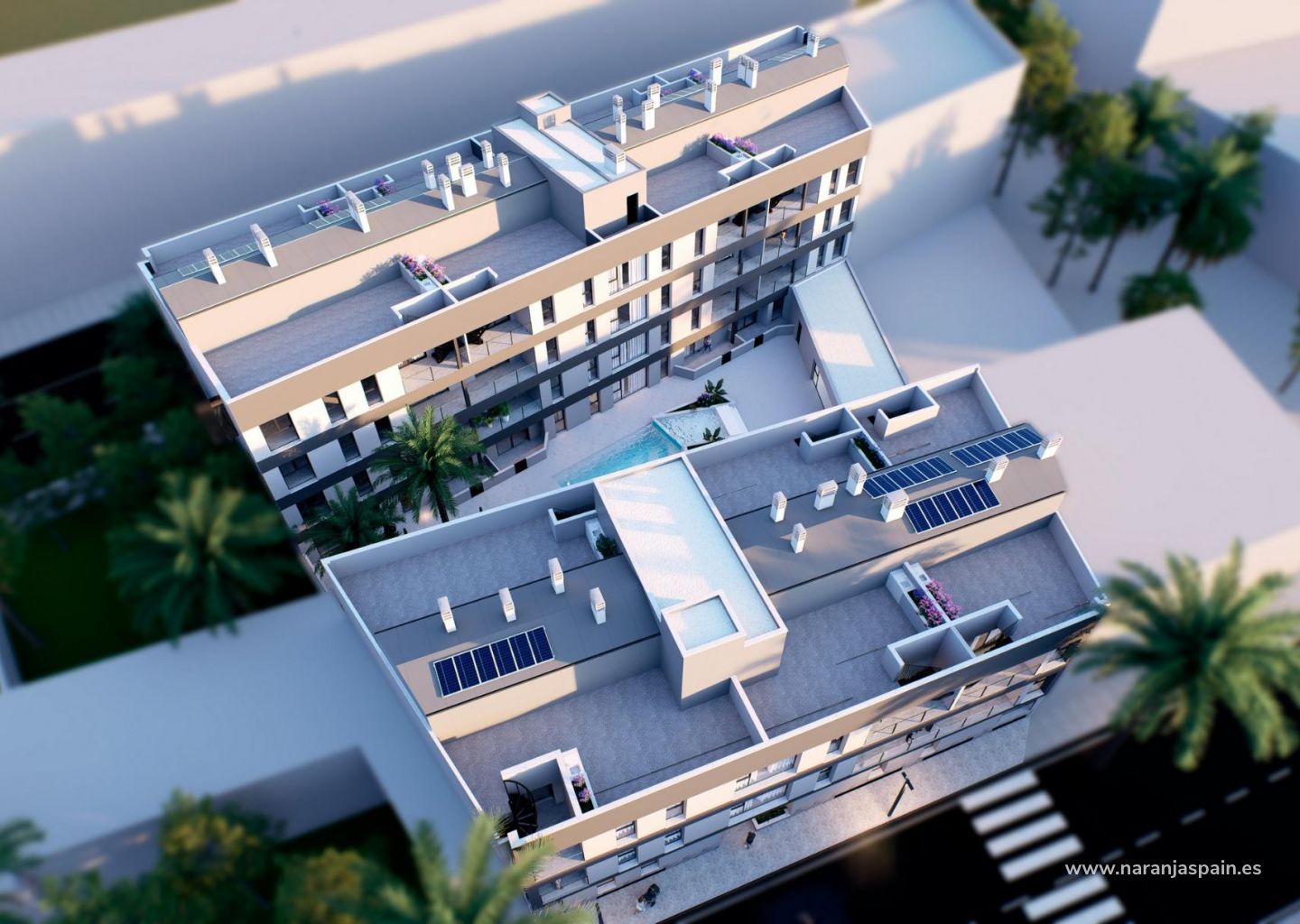 Nybyggede leiligheter til salgs i Lo Pagan (San Pedro del Pinatar) nær stranden Moderne middelhavsstil i Lo Pagan Oppdag disse stilige nybyggede leilighetene til salgs i Lo Pagan, et sjarmerende kystområde i San Pedro del Pinatar på den vakre Costa Calida. Dette boligprosjektet ligger i det velkjente nabolaget Los Cuarteros og tilbyr en privilegert livsstil bare 500 meter fra stranden og i nærheten av alle nødvendige tjenester, restauranter, butikker og fritidsområder. Lo Pagan er kjent for sin avslappede atmosfære ved sjøen, det rolige vannet i Mar Menor og mer enn 300 soldager hvert år. Området kombinerer tradisjonell spansk sjarm med moderne fasiliteter, noe som gjør det til et ideelt reisemål både for permanent opphold og ferieboliger. Moderne leiligheter med terrasser og private solterrasser Utbyggingen tilbyr et utvalg av leiligheter i første og andre etasje med romslige terrasser, samt eksklusive penthouse-leiligheter med private solterrasser på taket. Solterrassene har pergola og grillområde, noe som skaper den perfekte rammen for å spise ute og slappe av under middelhavssolen. Hver eiendom er designet for å kombinere moderne arkitektur med varm middelhavsstil. Det åpne kjøkkenet integreres sømløst med stue og spisestue, og skaper lyse og komfortable oppholdsrom. Store terrasser utvider innendørsarealene og gir det perfekte stedet for frokost eller kveldssamlinger utendørs. Soverommene har innebygde garderober, og de moderne badene er fullt utstyrte, noe som gir komfort og elegant finish i hele hjemmet. Kvalitetsfunksjoner og fellesfasiliteter Disse boligene er bygget med sans for detaljer og har høykvalitets spesifikasjoner for å sikre komfort og effektivitet. Fullt møblert kjøkken utstyrt med hvitevarer Fullt utstyrte bad med moderne finish Fullt installert klimaanlegg Privat parkeringsplass og bod inkludert i hver bolig Beboerne kan også nyte gode fellesfasiliteter, inkludert et svømmebasseng omgitt av avslapningsområder og et fullt utstyrt treningsstudio, ideelt for å opprettholde en aktiv livsstil hele året. Utmerket beliggenhet på Costa Calida Dette boligprosjektet har en strategisk beliggenhet nær strender, golfbaner og viktige destinasjoner langs kysten. Playa de Villananitos 0,5 km Real Club Nautico de Lo Pagan 0,5 km Lo Romero Golf 10 km Murcia internasjonale lufthavn 40 km Cartagena 35 km De nærliggende strendene i Mar Menor, som Playa de La Puntica, er kjent for sin fine sand og rolige vann, ideelt for svømming, seiling og vannsport. Ditt nye hjem ved sjøen venter Nyt sol, strender og et livlig kystliv i et av de mest ettertraktede områdene på Costa Calida. Kontakt oss i dag for mer informasjon om disse nybygde leilighetene i Lo Pagan og sikre deg din plass ved sjøen.