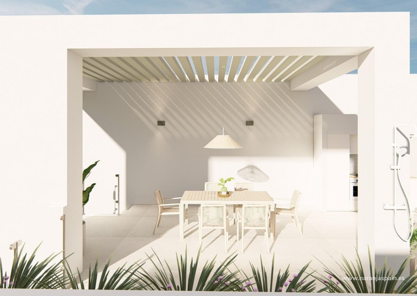 Solariumene har utendørs dusj og mulighet for å legge til et sommerkjøkken og privat boblebad, noe som skaper et ideelt sted for avslapning og underholdning mens man nyter den åpne utsikten over golfbanen og det omkringliggende landskapet.