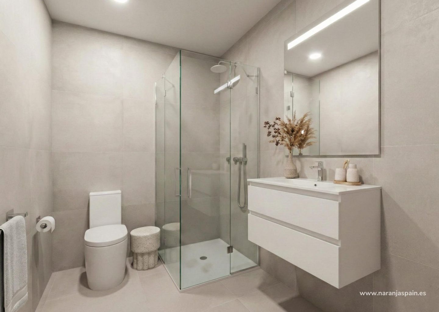 Disse nybyggene leveres med høykvalitets finish og moderne funksjoner. Kjøkkenene er fullt møblerte og utstyrt med hvitevarer, mens badene er ferdig utstyrt med dusjvegger og armaturer.