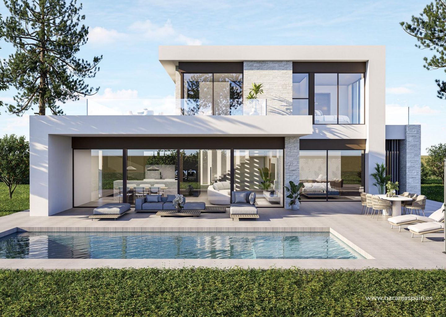 Alle villaene er bygget med materialer av høy kvalitet og inkluderer et privat svømmebasseng på 8 x 4 meter, fullt utstyrt kjøkken med hvitevarer og komplett klimaanlegg med Airzone-teknologi.