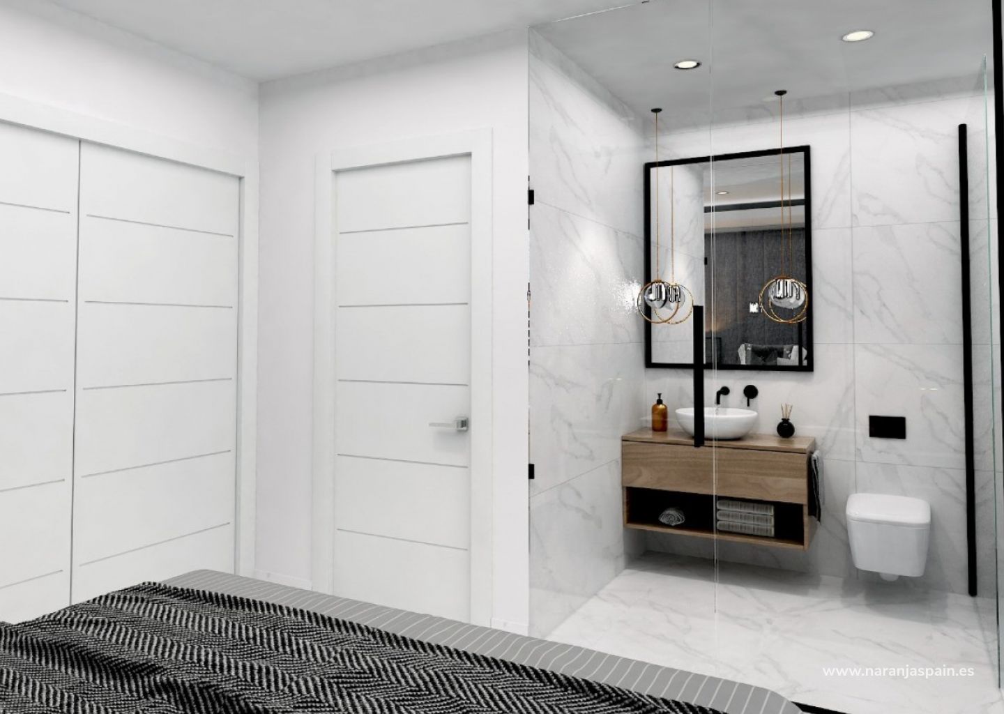 Każda willa posiada trzy sypialnie i trzy łazienki, zapewniając dużo miejsca do relaksu i prywatności. Główna sypialnia to prawdziwa oaza spokoju z prywatną łazienką i widokiem na okolicę.