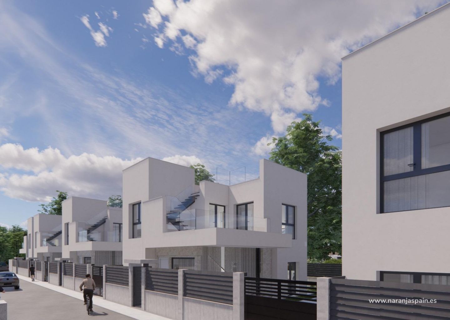 Nowoczesne, nowo wybudowane wille w La Herrada Los Montesinos z prywatnym basenem Ekskluzywny projekt mieszkaniowy w spokojnej okolicy Położona w prestiżowej dzielnicy mieszkaniowej La Herrada w Los Montesinos, ta ekskluzywna inwestycja obejmująca 16 nowoczesnych willi zapewnia prywatność, komfort i doskonałą jakość życia. La Herrada słynie z spokojnej atmosfery mieszkaniowej, bliskości codziennych udogodnień i doskonałej lokalizacji pomiędzy słynnymi solniskami Torrevieja i La Mata. Jest to idealne miejsce dla osób poszukujących relaksującego i zdrowego śródziemnomorskiego stylu życia na południu Costa Blanca. Nowoczesny design z optymalną przestrzenią wewnętrzną Każda willa ma 130 m² dobrze rozplanowanej powierzchni mieszkalnej na dwóch piętrach, zaprojektowanej tak, aby maksymalnie wykorzystać naturalne światło i funkcjonalność. Nieruchomości, zbudowane na działkach o powierzchni od 250 m², oferują przestronne obszary zewnętrzne, idealne do opalania się, rozrywki lub relaksu przy prywatnym basenie. Wygodny układ na dwóch piętrach Na parterze znajduje się otwarty salon z w pełni zintegrowaną kuchnią i bezpośrednim dostępem do ogrodu i basenu. Na tym piętrze znajdują się również dwie sypialnie, w pełni wyposażona łazienka i praktyczna pralnia. Na piętrze znajdują się dwie przestronne sypialnie, każda z własną łazienką, z których jedna jest łazienką przy sypialni. Obie sypialnie mają dostęp do otwartego prywatnego tarasu o powierzchni 28 m². Dla tych, którzy chcą mieć jeszcze więcej przestrzeni na świeżym powietrzu, dostępne jest opcjonalne solarium na dachu, dostępne za dodatkową opłatą. Wysokiej jakości wykończenia i nowoczesne wyposażenie Wille wyposażone są w wysokiej jakości elementy wykończeniowe, takie jak meble łazienkowe, lustra, kabiny prysznicowe i ogrzewanie podłogowe we wszystkich łazienkach. Istnieje możliwość instalacji klimatyzacji kanałowej, bramy wjazdowej z napędem elektrycznym, prywatnego parkingu na działce oraz ogrodzonego dostępu do osiedla przez prywatną drogę wewnętrzną. Doskonała lokalizacja w pobliżu kluczowych udogodnień i atrakcji Plaże Guardamar i Torrevieja w odległości 9 km Pola golfowe La Marquesa Golf, La Finca Golf i Vistabella Golf w odległości mniej niż 5 km Lotnisko w Alicante w odległości 29 km Parki przyrodnicze, solniska, trasy rowerowe i szlaki turystyczne w pobliżu Komfortowe życie w samym sercu Costa Blanca Te nowo wybudowane wille w Los Montesinos oferują idealne połączenie nowoczesnego komfortu, naturalnego otoczenia i doskonałej dostępności. Niezależnie od tego, czy szukasz stałego miejsca zamieszkania, czy domu wakacyjnego, ta inwestycja oferuje wszystko, czego potrzebujesz, aby cieszyć się spokojnym i komfortowym śródziemnomorskim stylem życia. Skontaktuj się z nami już dziś, aby umówić się na oglądanie nieruchomości i zapewnić sobie nowy dom w La Herrada.