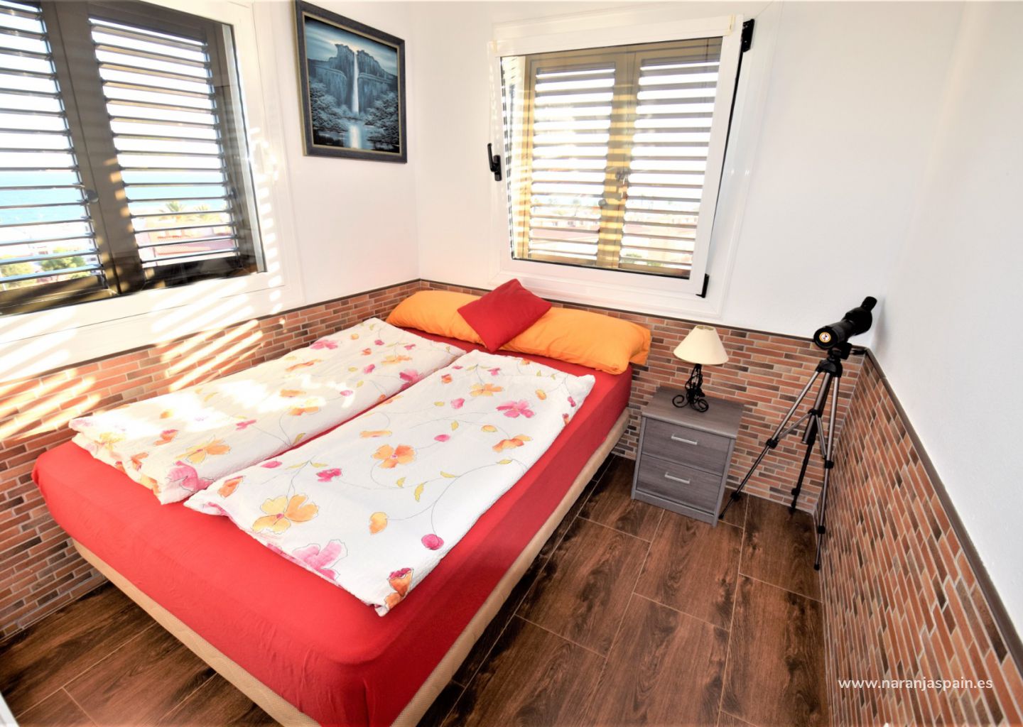 Bungalow en pueblo Santa Pola con vistas al mar. Vivienda situada en la planta superior del bungalow, con 2 dormitorios y un amplio baño con bañera triangular. Cuenta con una terraza de 4m2 donde hay una mini cocina instalada, muebles del exterior y increíbles vistas al mar.