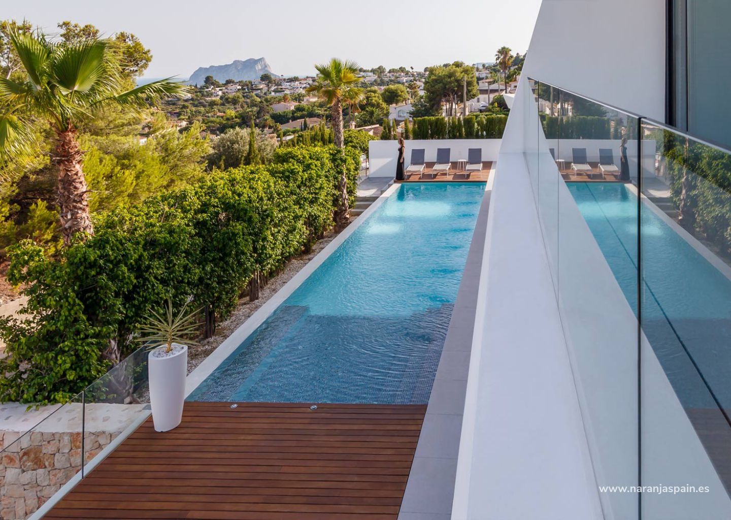 Villa en Moraira está ubicada en una parcela de 800 m² en una zona verde rodeada de montañas. La villa dispone de planta sótano, planta baja y planta primera. La casa es muy sencilla de estilo moderno y terrazas cubiertas y descubiertas. En la vivienda encontraremos 4 dormitorios, 3 baños, salón-comedor y cocina, los espacios estan bien diseñados y tienen mucha luz natural. También encontraremos zona chillout junto a la piscina, un jardín privado, zona de aparcamiento y garaje para dos coches. La villa dispone de 255,20m². El proyecto está diseñado por el estudio de arquitectura..