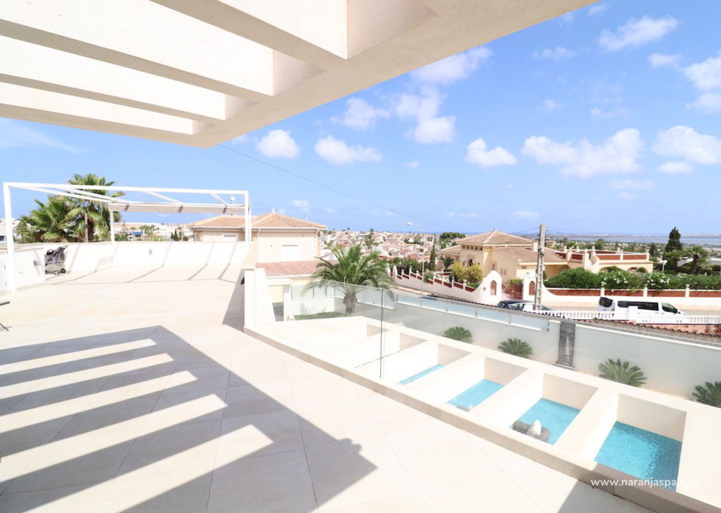 Solárium de 100 m2 con visas al mar y a las salinas con pre-instalación para jacuzzi.