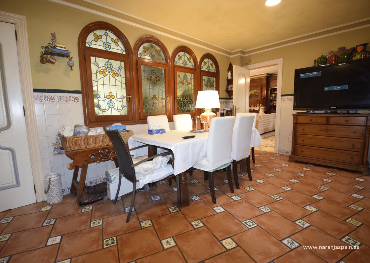 En planta baja nos encontramos con un enorme recibidor con techo de 9m de altura, una oficina ( que se puede utilizar de dormitorio ), un dormitorio con armario empotrado y baño completo en suite , aseo de invitados, gran salón con chimenea y muebles de lujo, cocina-comedor con la galería, garaje para dos coches.