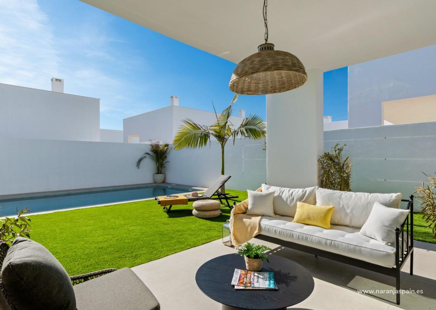 Villa de nueva construcción de una sola planta con 3 dormitorios, 2 baños y solarium privado a 500 metros de las playas de Mar De Cristal.