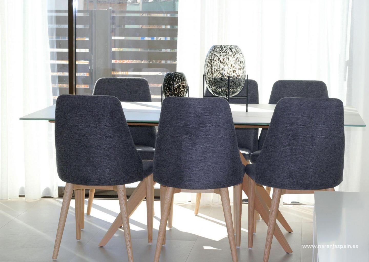 Los adosados tienen 4 dormitorios, 2 baños, cocina abierta, salón con acceso directo a la acogedora zona de la piscina, terraza en la parte trasera con plaza de aparcamiento, terraza y gran solarium en la azotea.