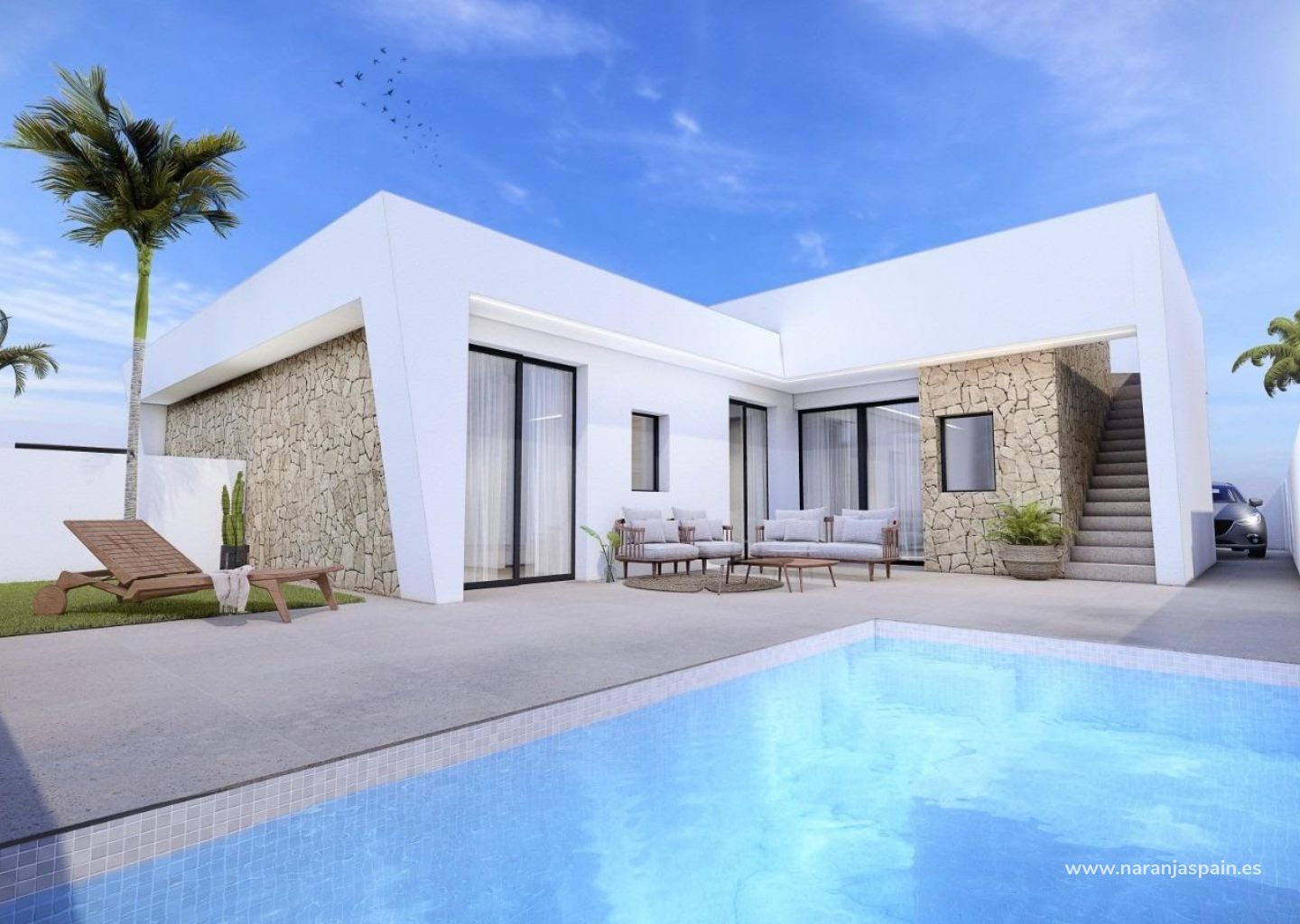 Villas pareadas de obra nueva de 3 dormitorios con aparcamiento en la parte delantera, paredes de piedra, piscina privada trasera, amplio solarium en la azotea y un trastero en Roldán, Torre-Pacheco.