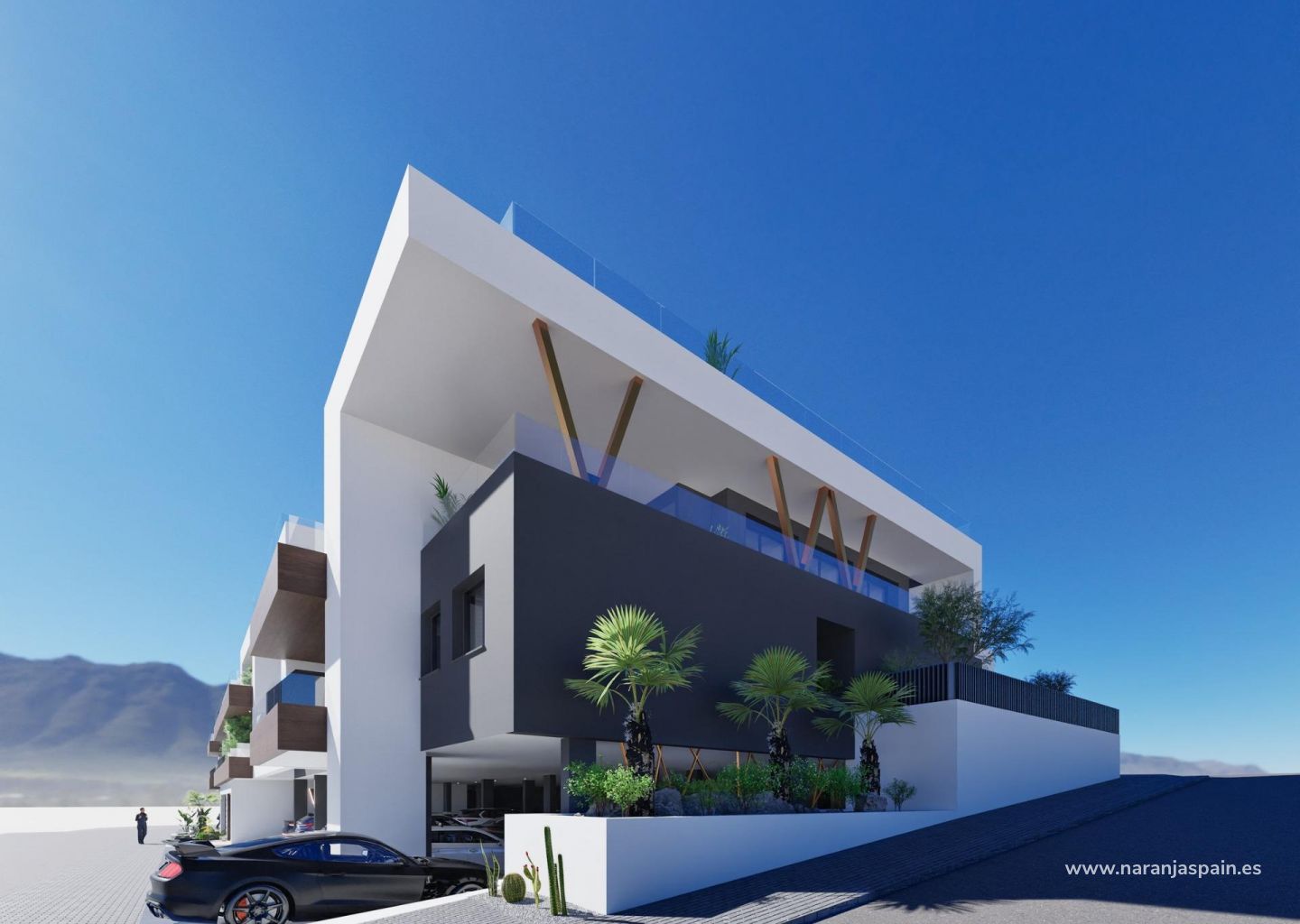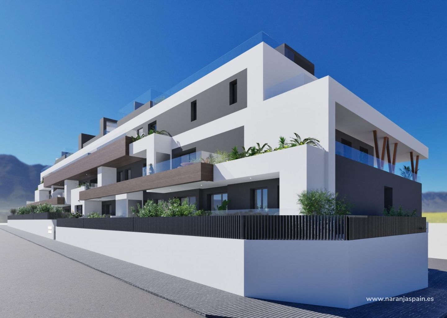 Residencial de obra nueva con piscina comunitaria en la azotea situado en el centro del encantador pueblo de Benijofar.